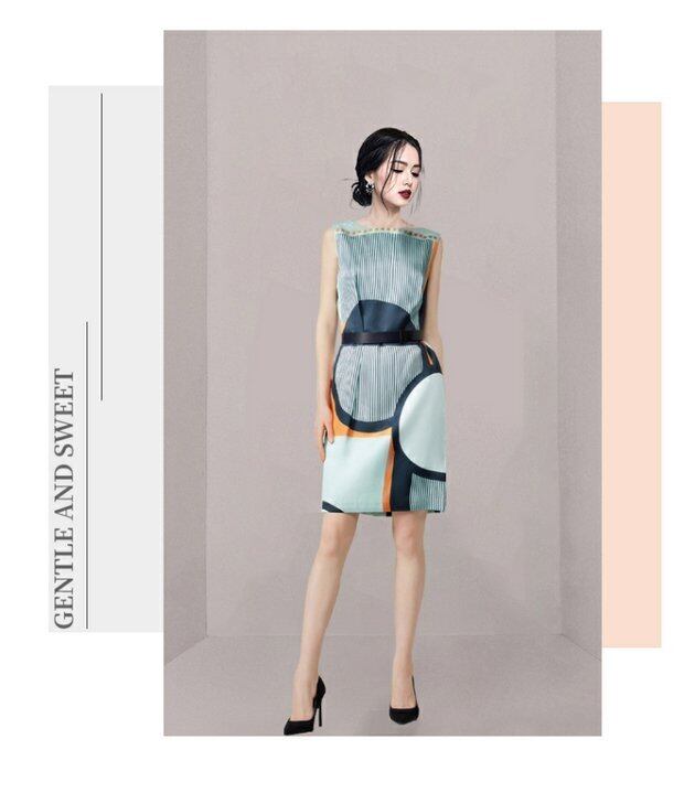 Discount store mall counters withdrawn women's clothing tail goods clearance geometric pattern slim fashion sleeveless dress ノースリーブ スリム missry84074815189 | guttiy
