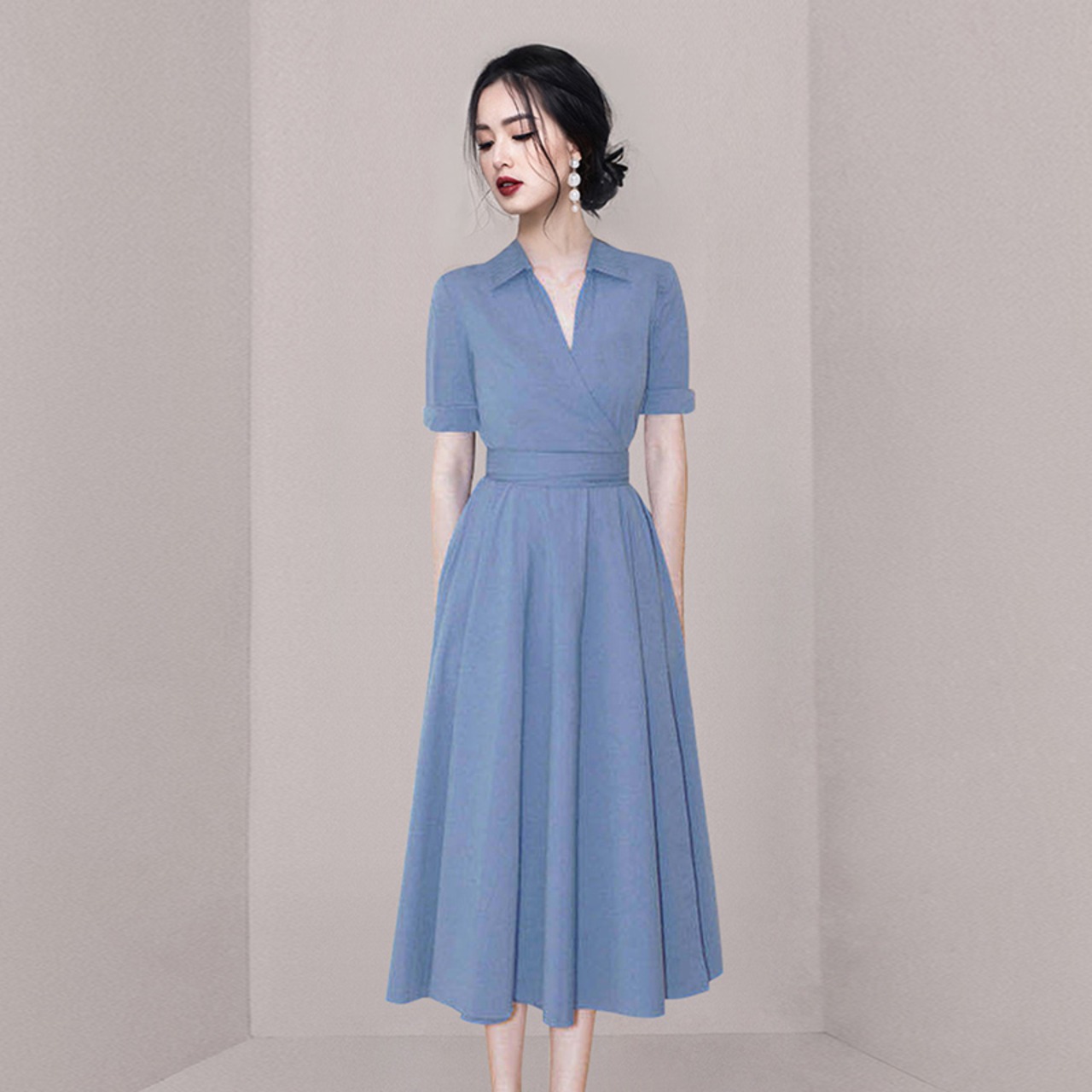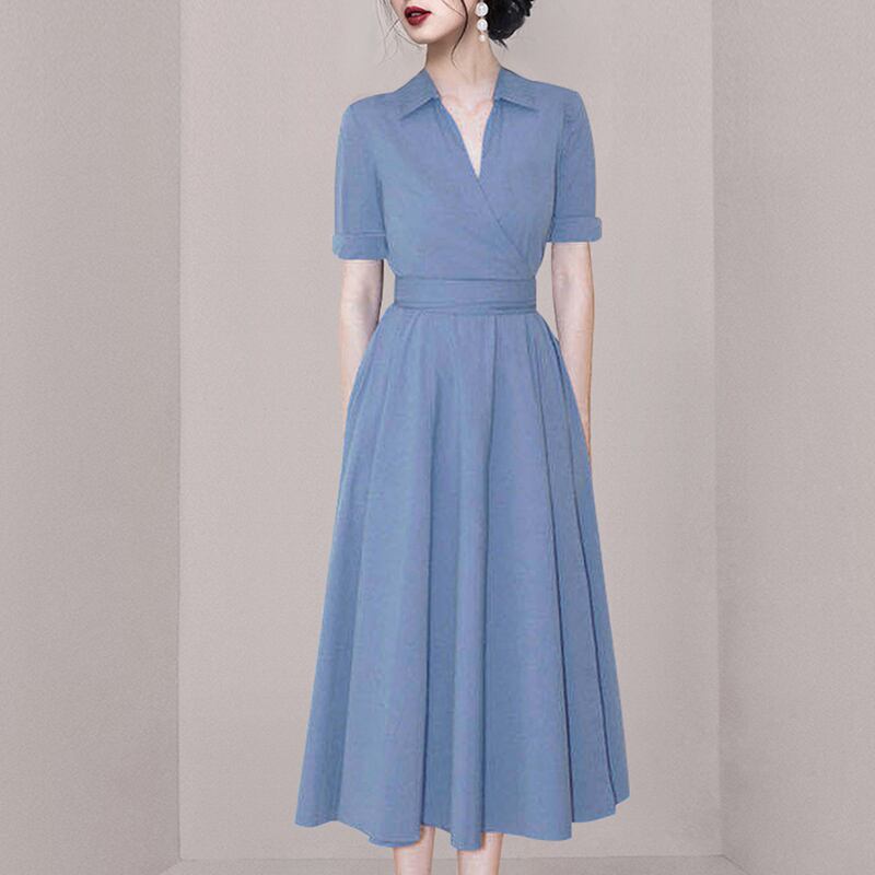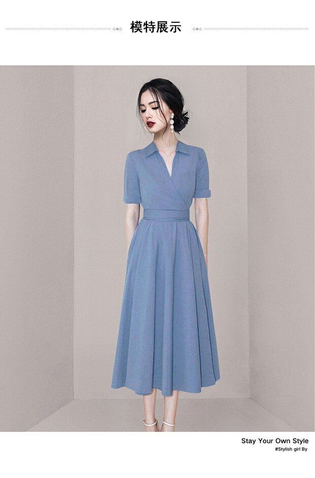 Discount store mall counters withdraw women's clothing tail goods clearance goddess fan V-neck slim waist A-line dress Vネック Aライン スリム missry6605233493 | guttiy