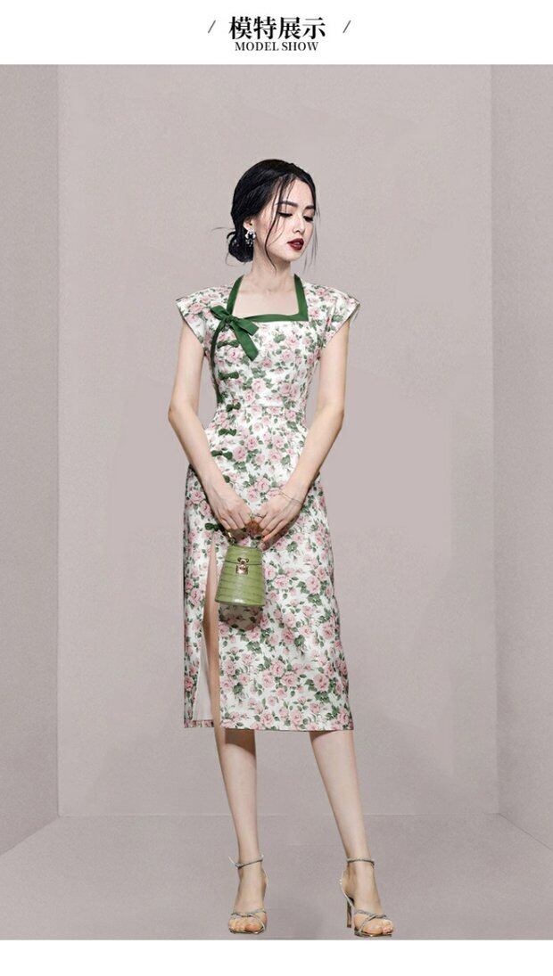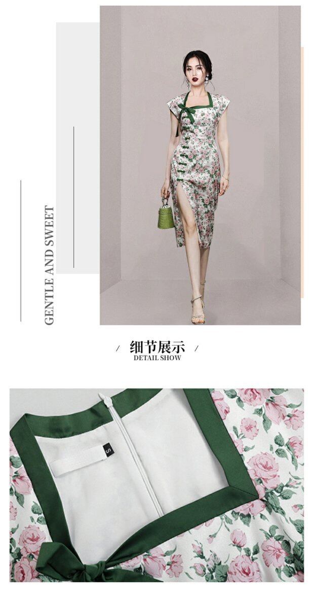 Discount store mall counters withdrawn women's clothing tail goods clearance close waist show thin niche print cheongsam dress women missry63303157534 | guttiy