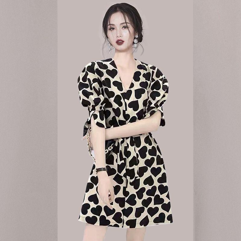Discount store mall counter withdrawal women's clothing final clearance fashion V-neck love print dress women Vネック missry58358585951 | guttiy