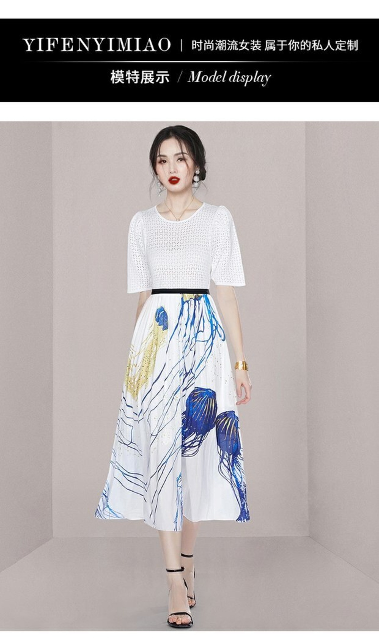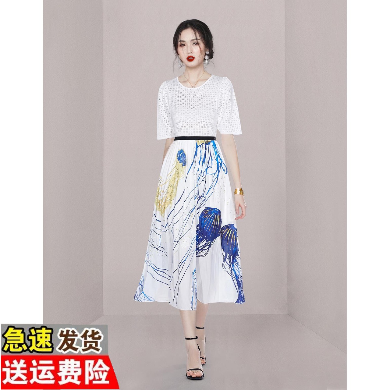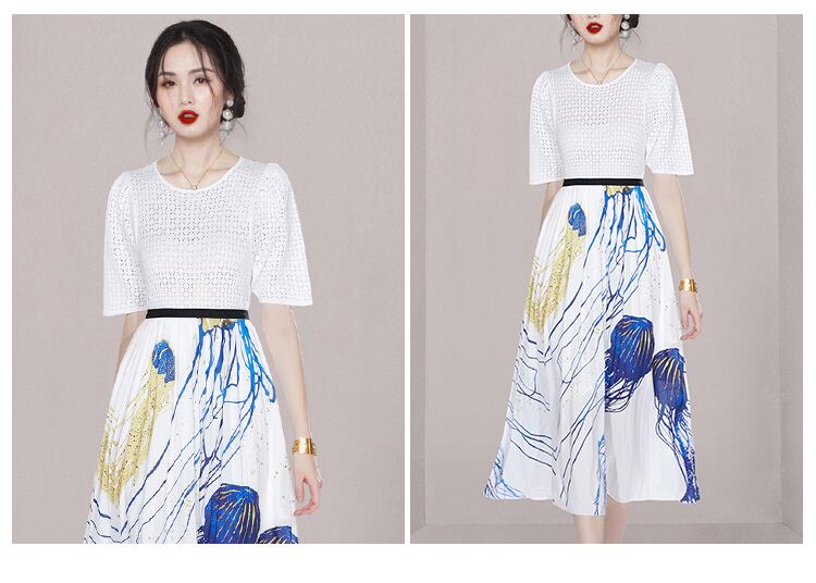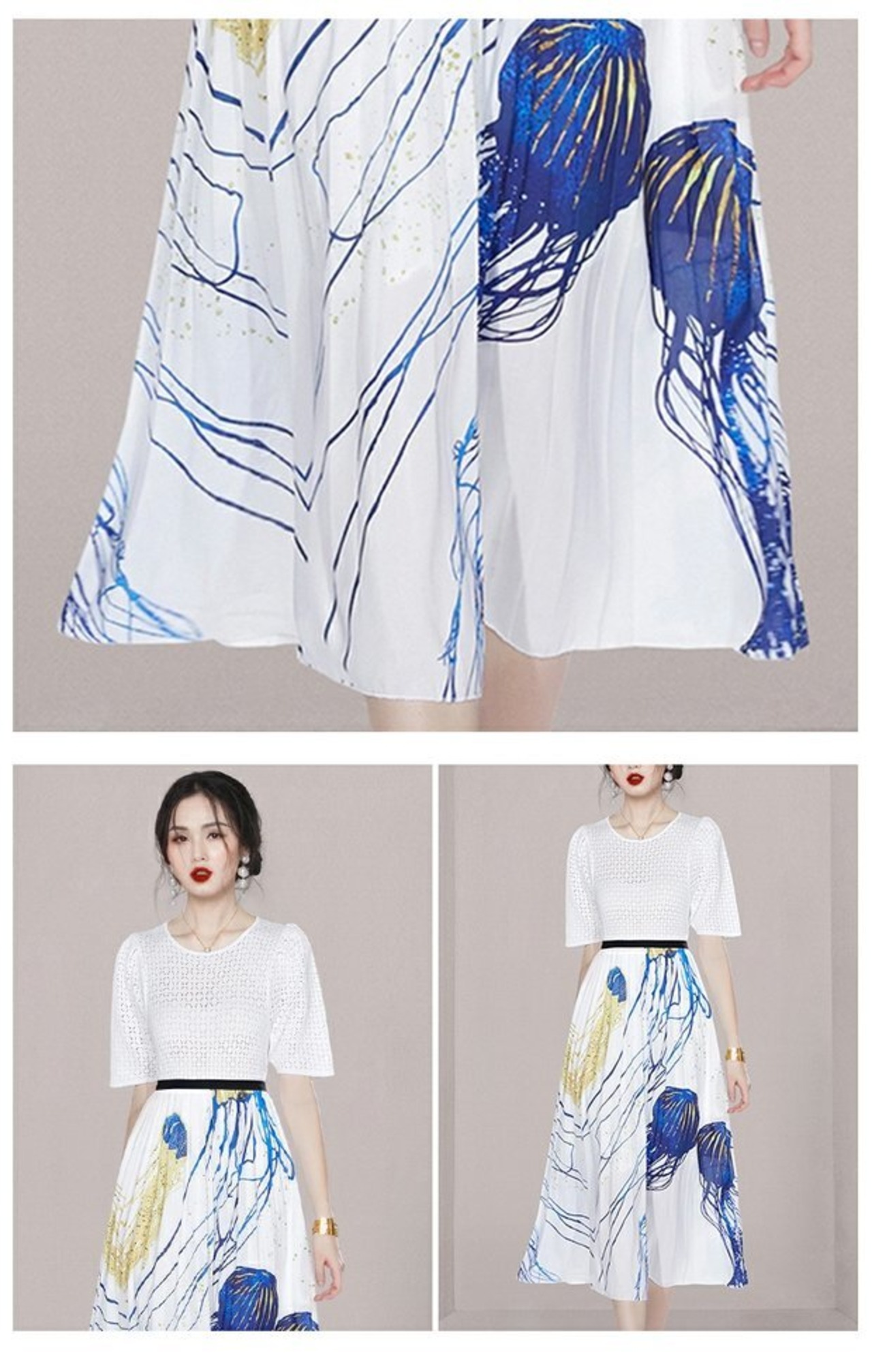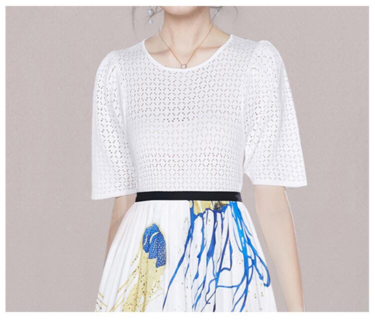 Discount Store Mall Counters Withdrawal Women's Ends Clearance Hollow Knit Sweater + Slim Print Two-piece Set スリム missry82168415841 | guttiy