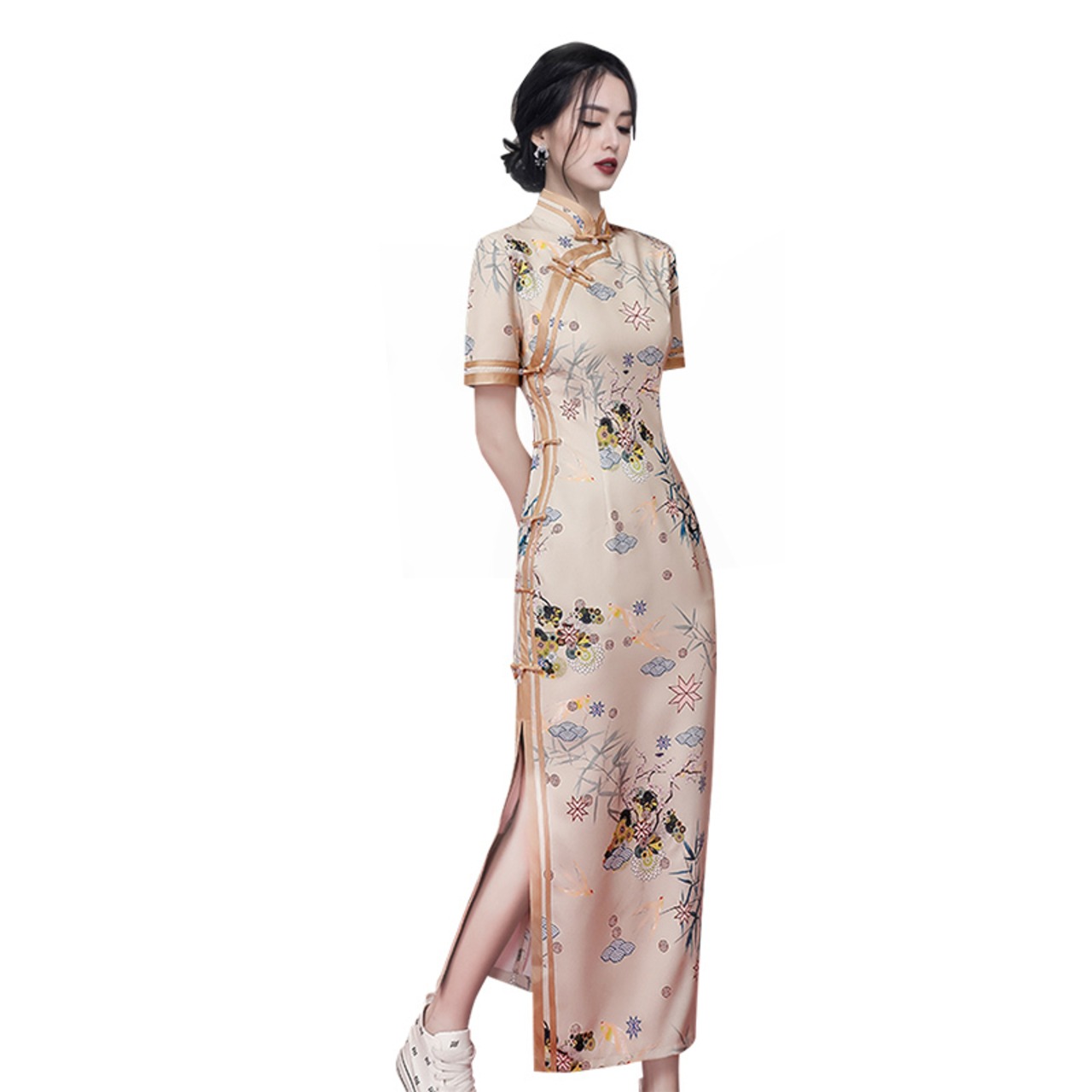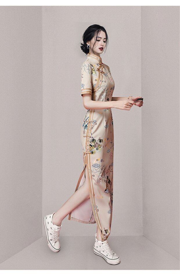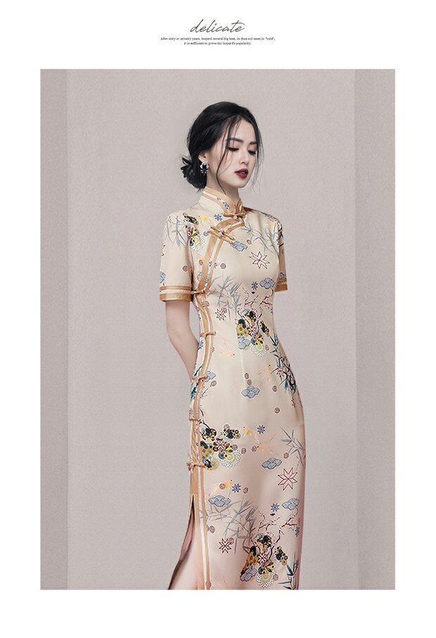 Discount store mall counters withdraw women's clothing tail goods clearance, waist ladies wear improved cheongsam print dress missry81178163579 | guttiy