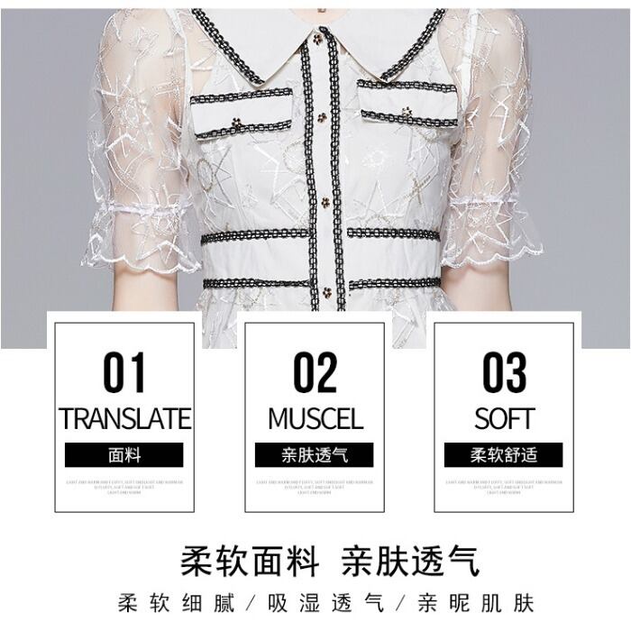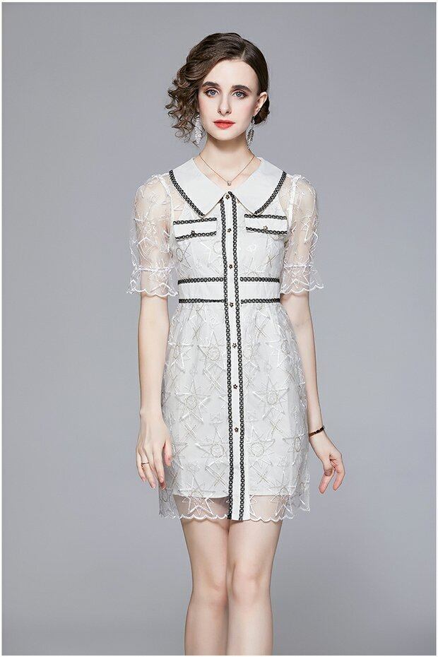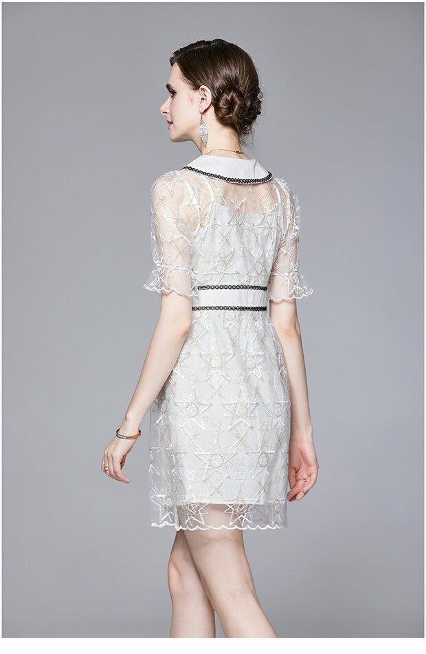 Discount Store Mall Counters Withdrawal Women's Final Clearance Pentagram Sequin Embroidery Hollow POLO Shirt Dress 刺繍 missry21429688208 | guttiy