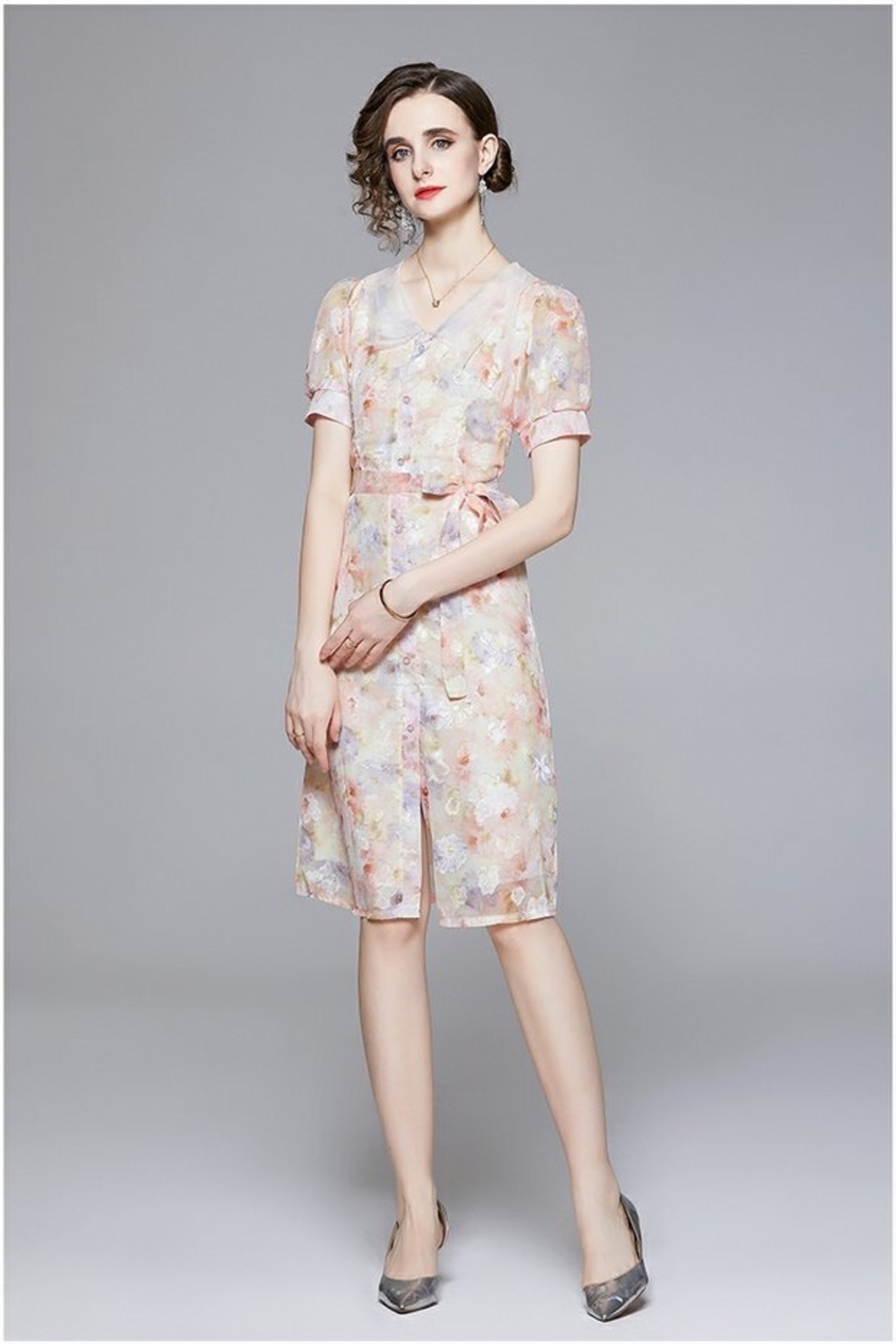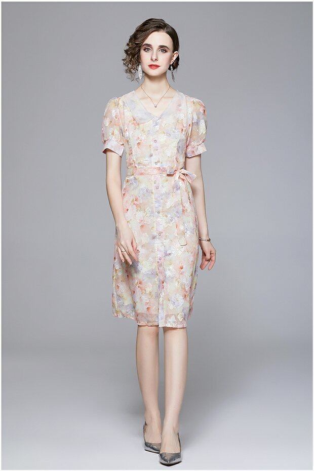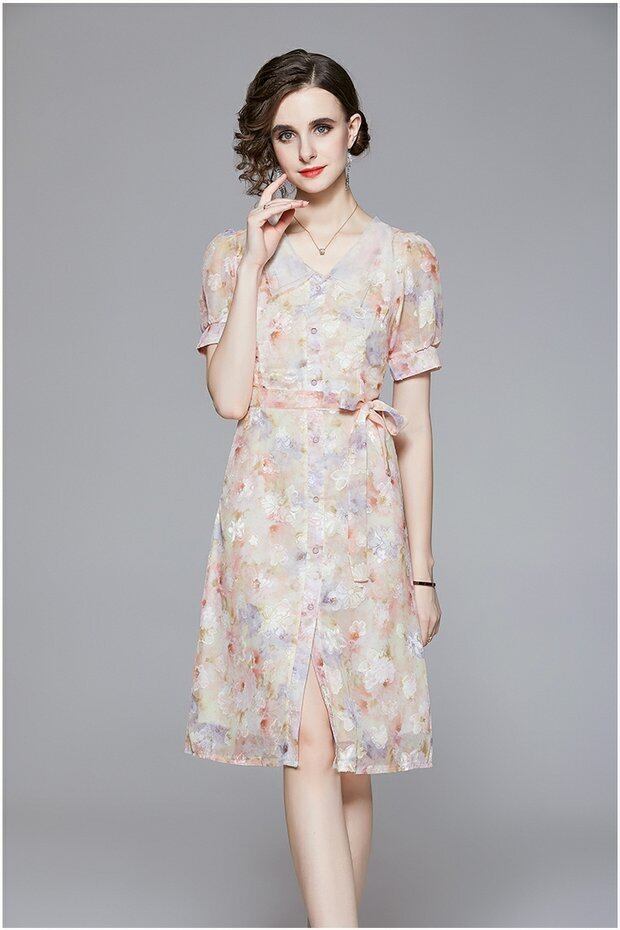 Discount store mall counter withdrawal women's clothing tail goods clearance new doll collar jacquard floral dress women 花柄 missry69135791593 | guttiy