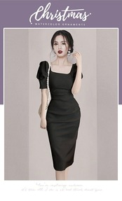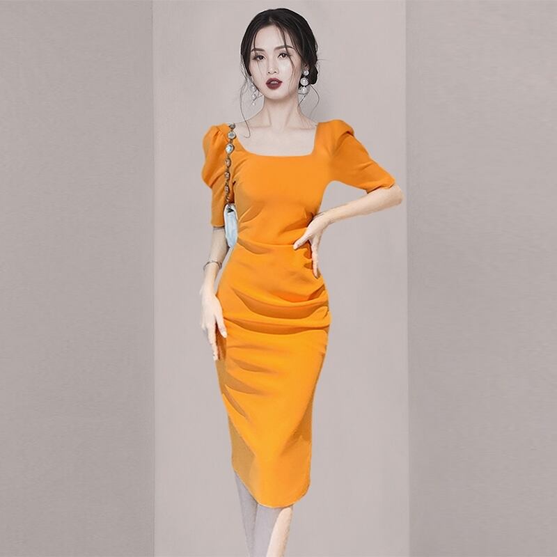Discount Store Mall Counters Withdrawal Women's Final Clearance Women's Clothes Puff Sleeves Pleated Square Neck Dress プリーツ スクウェア missry50500686558 | guttiy