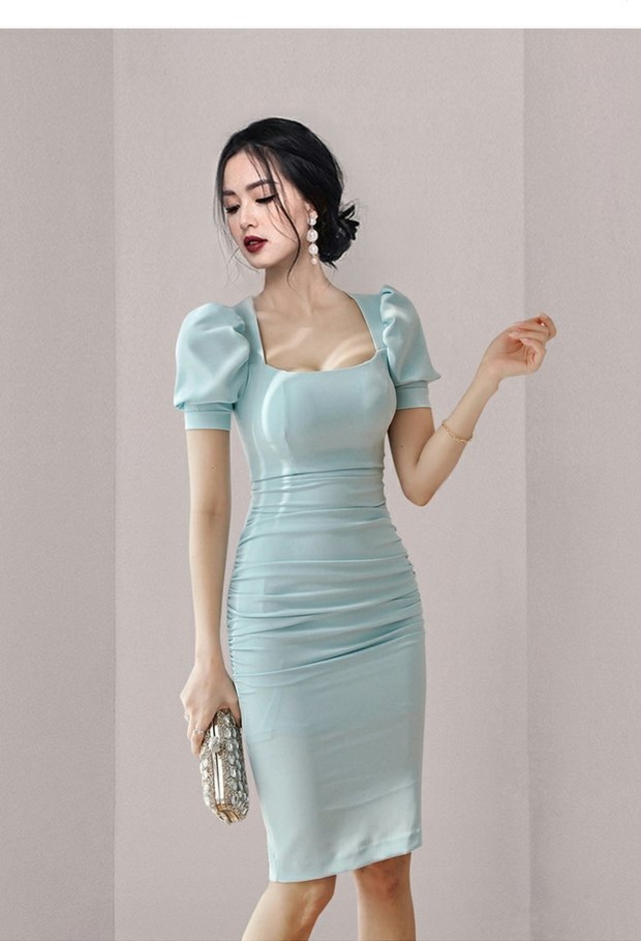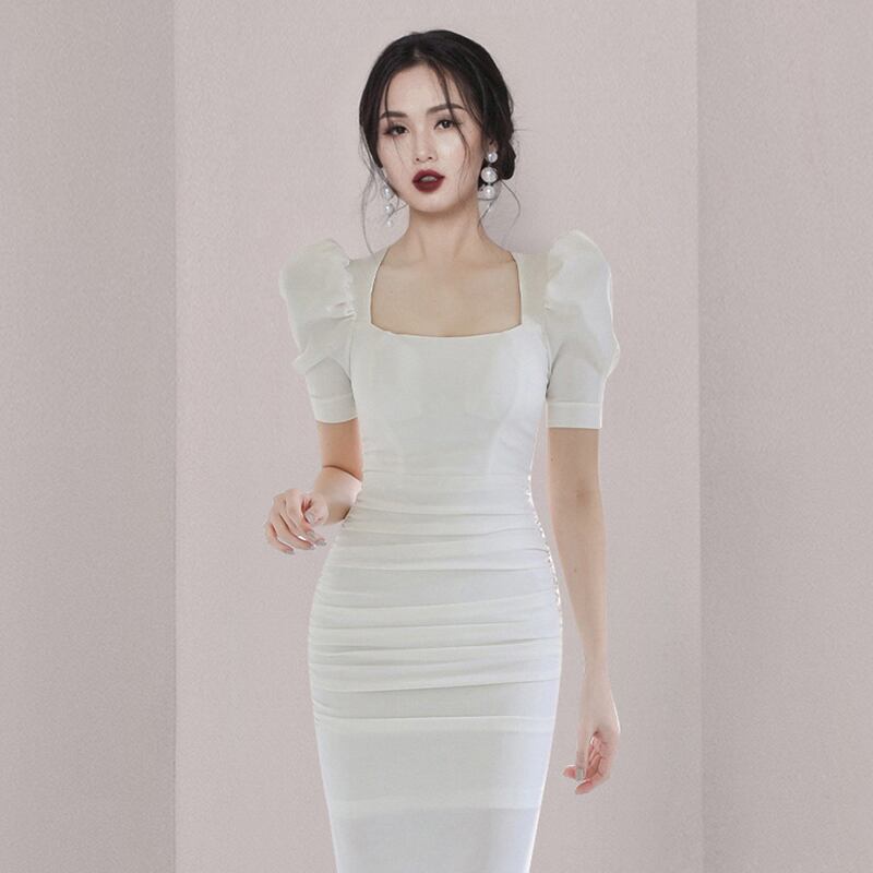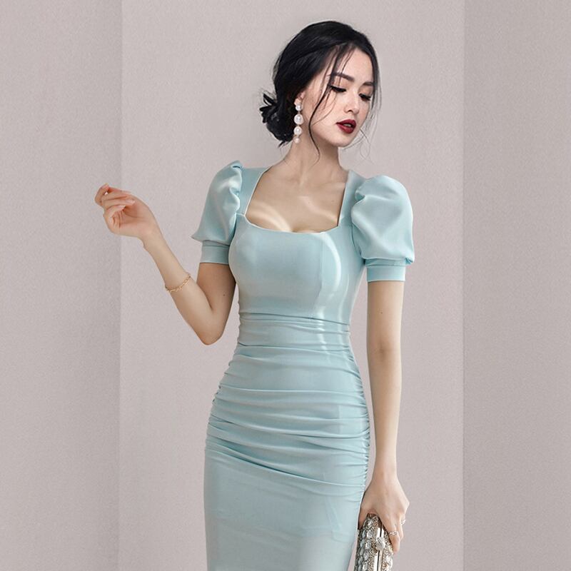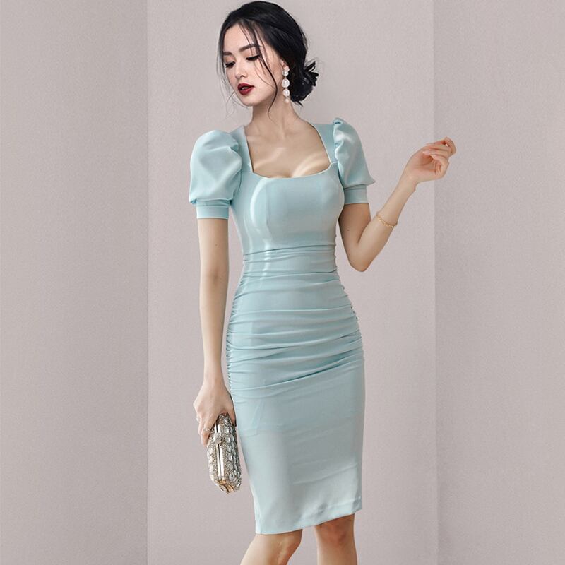 Discount store mall counter withdrawal women's clothing tail goods clearance is thin and bright color professional mid-length commuter solid color dress ソリッドカラー missry74757366523 | guttiy