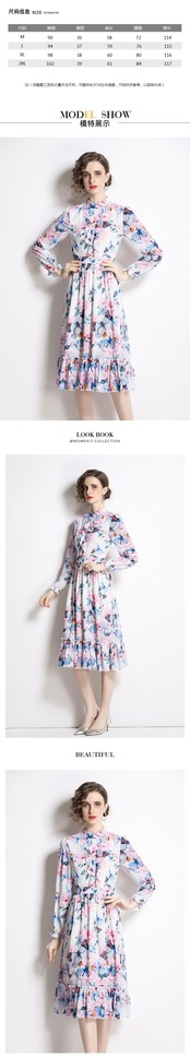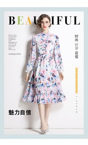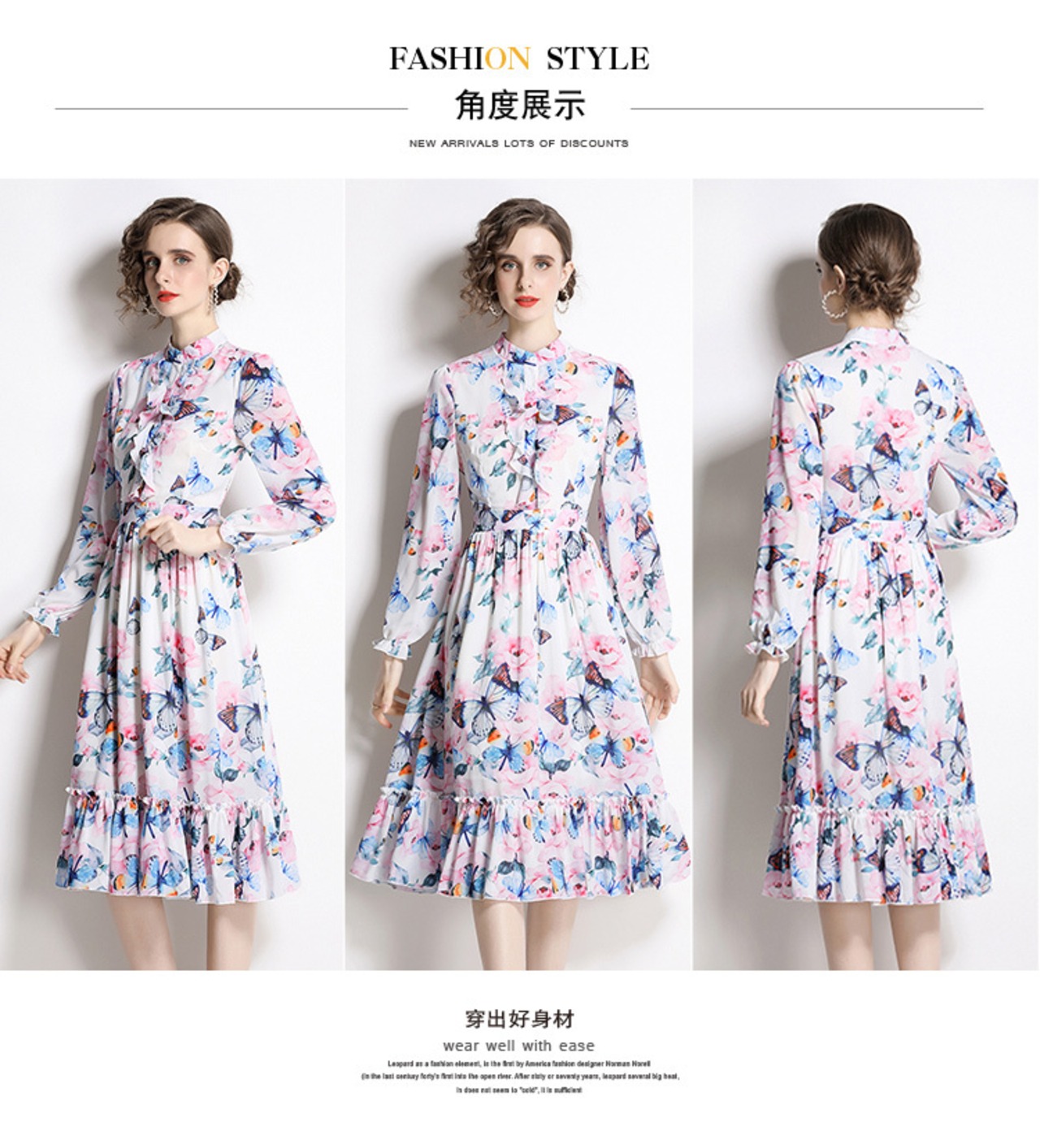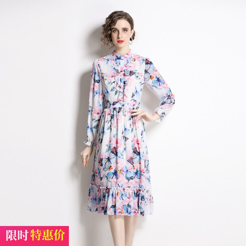 Discount Store Mall Counters Withdrawal Women's Clearance Round Neck Single Breasted Fungus Edge Slim Fit Long Sleeve Dress ロング 長袖 Oネック スリム missry27803698732 | guttiy