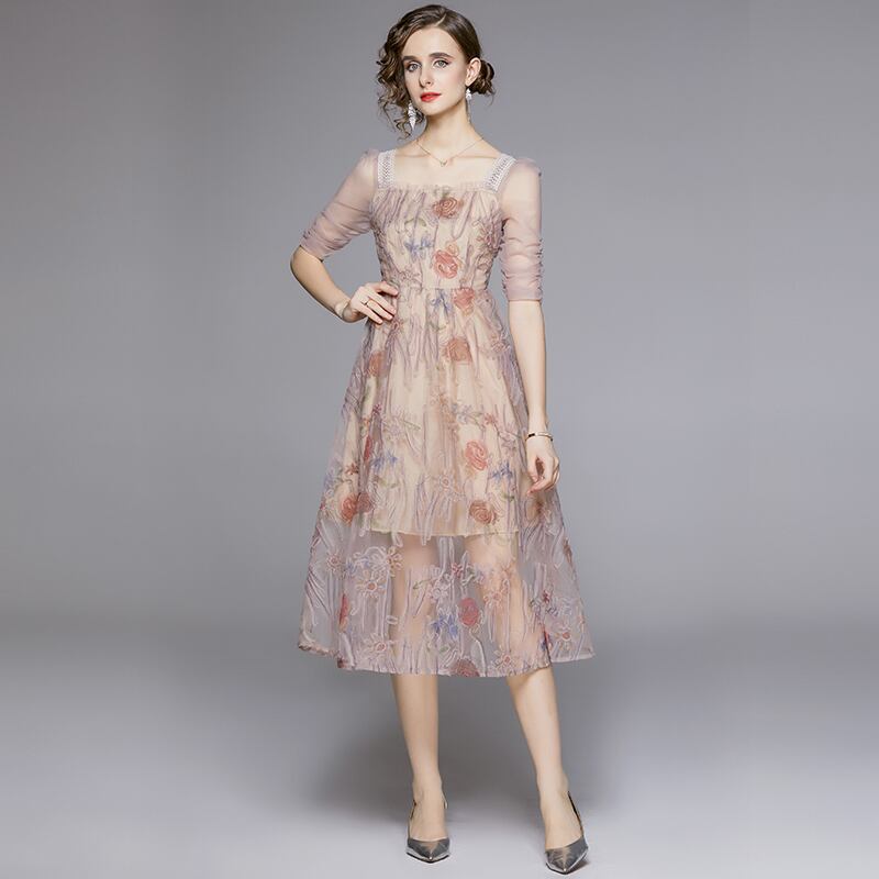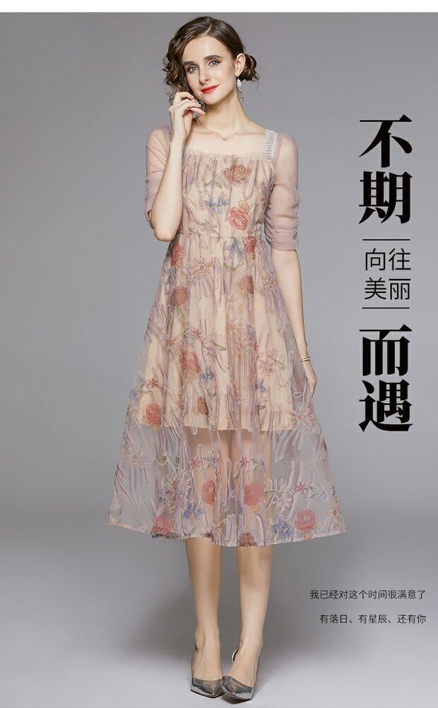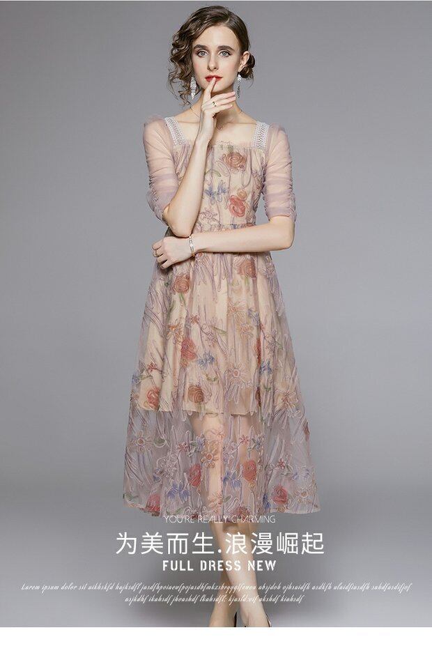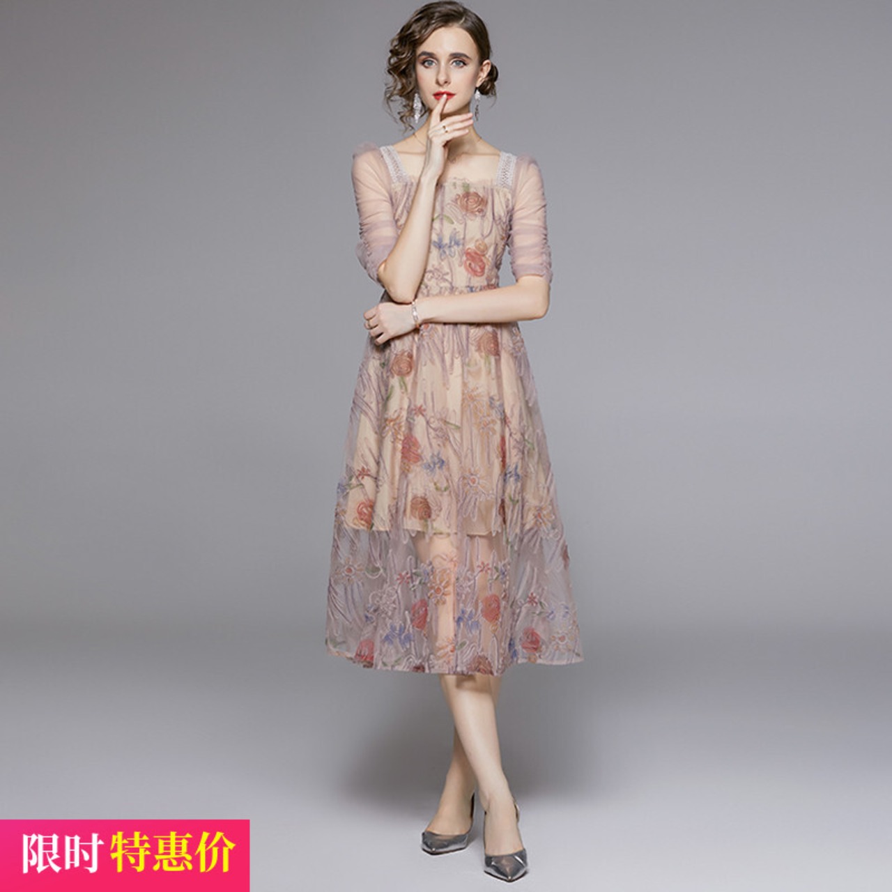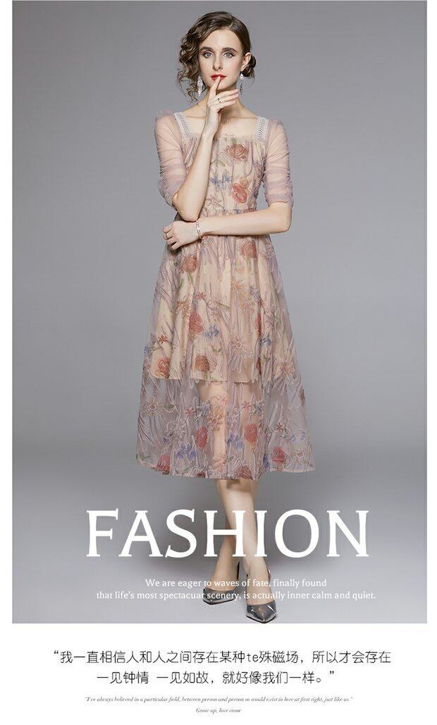 Discount store mall counter withdrawal high waist slimming positioning printing mesh dress ハイウェスト メッシュ missry50647388018 | guttiy