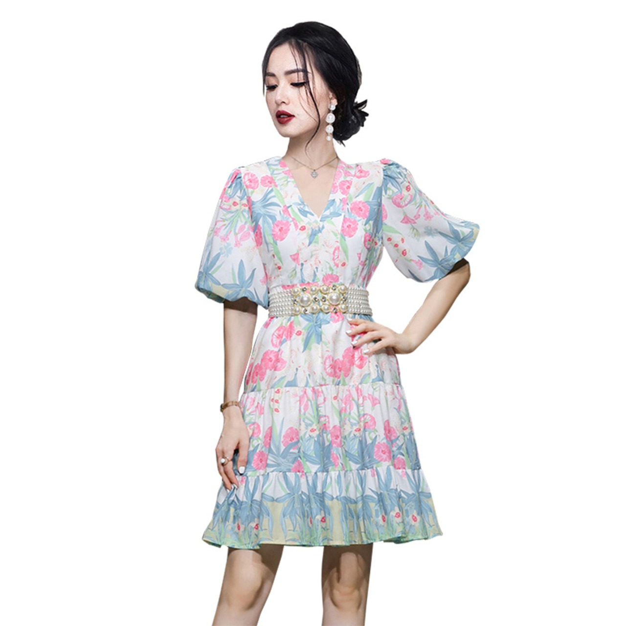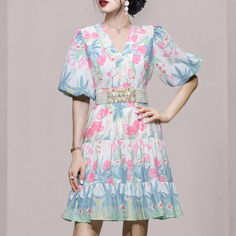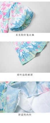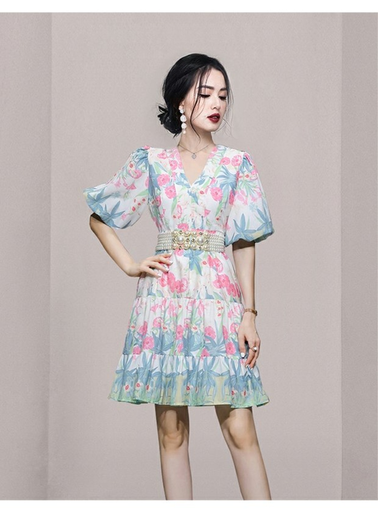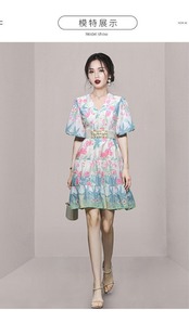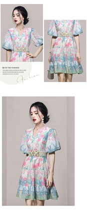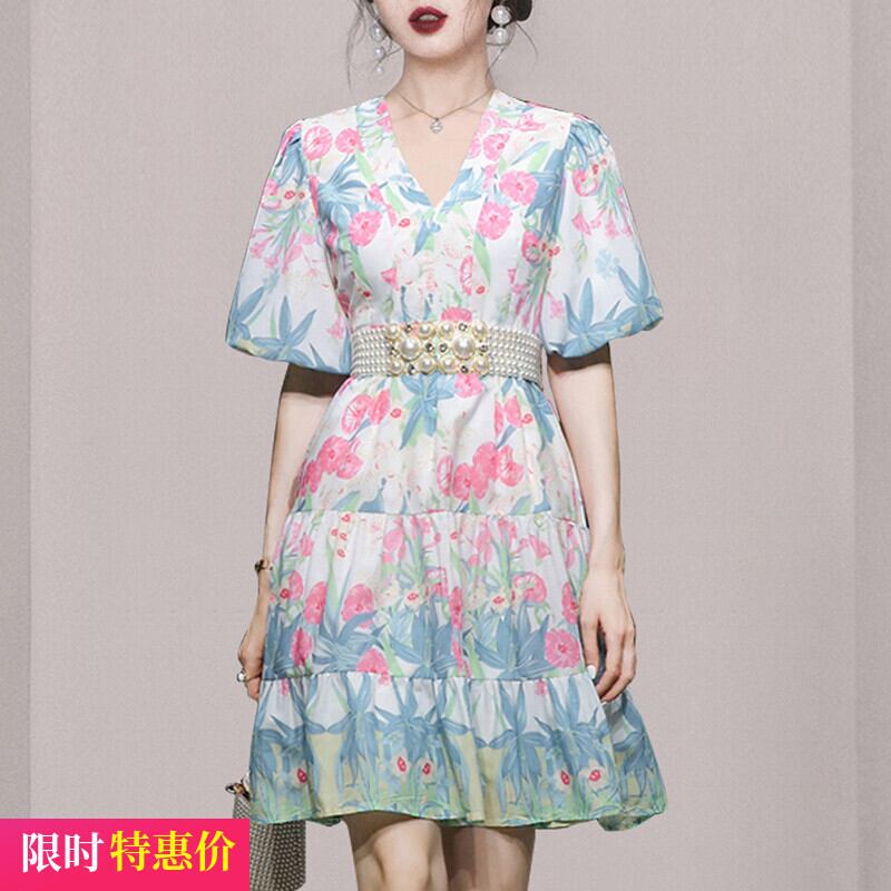 Discount store mall counters withdrawn women's clothing tail goods clearance lantern sleeves waist slim printed dress ランタンスリーブ プリント スリム missry32418794667 | guttiy