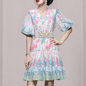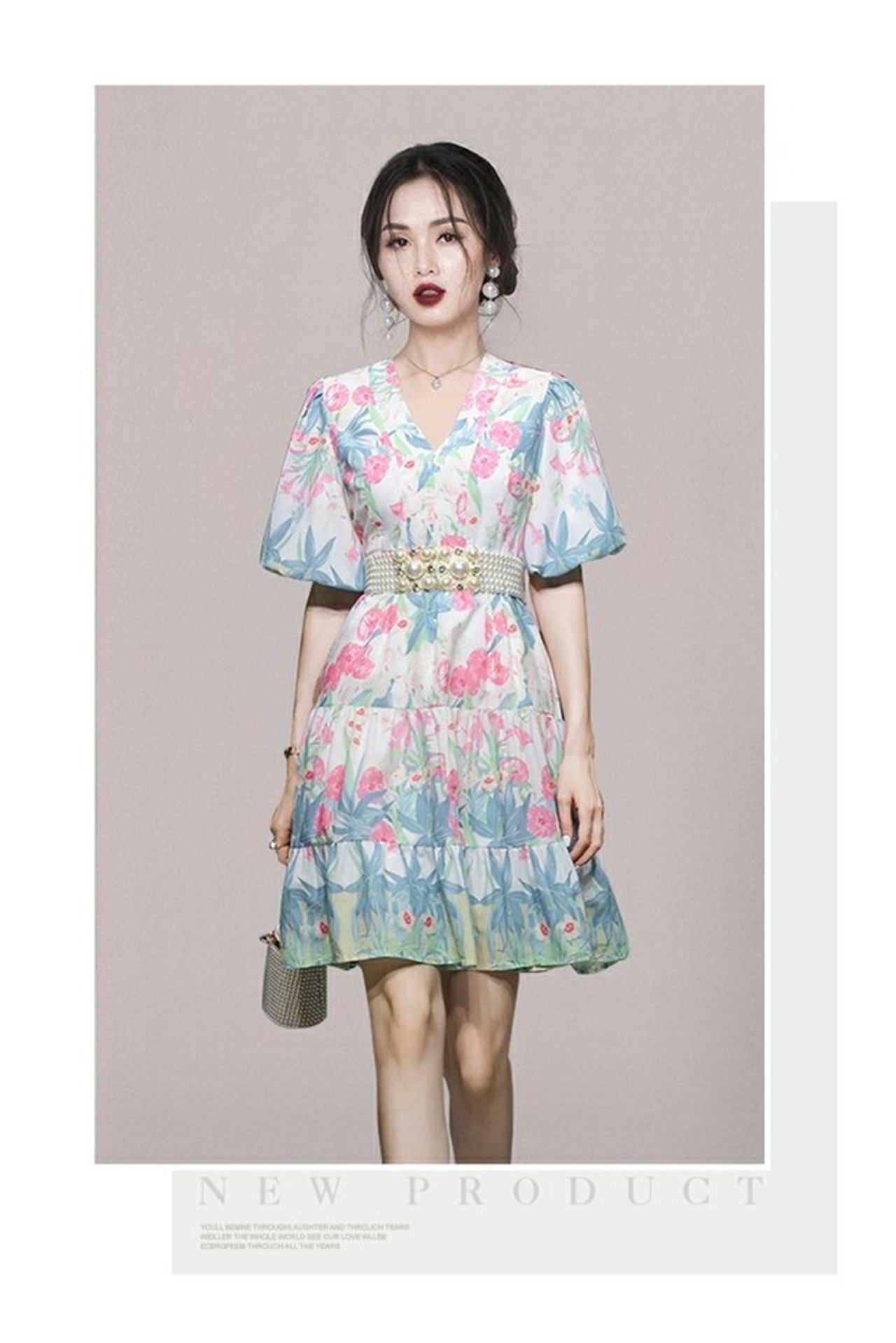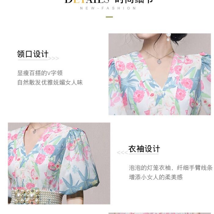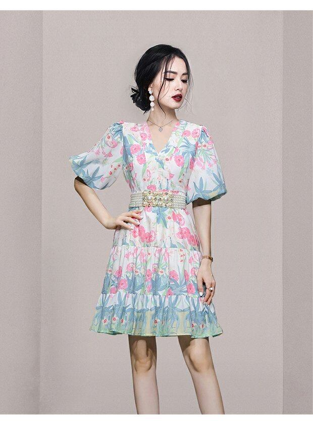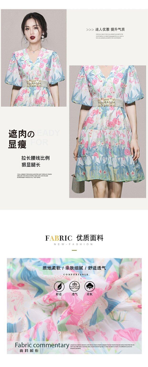 Discount store mall counters withdrawn women's clothing tail goods clearance lantern sleeves waist slim printed dress ランタンスリーブ プリント スリム missry32418794667 | guttiy