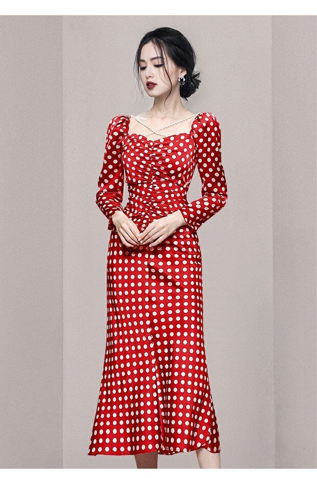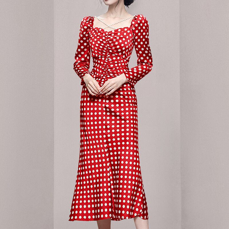 Discount Store Mall Counters Withdrawal Women's Tail Clearance Chiffon Square Neck Long Sleeve Long Skirt Waist Print Fishtail Skirt ロング シフォン 長袖 スカート スクウェア missry58180760566 | guttiy