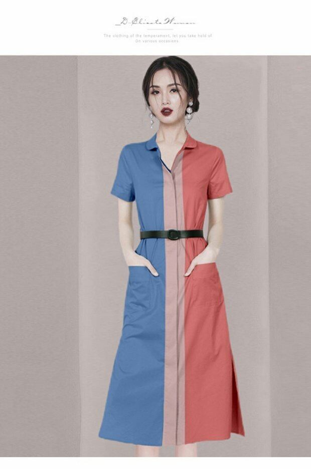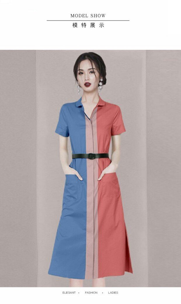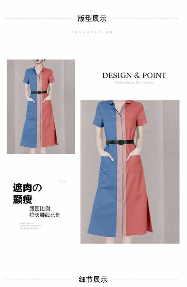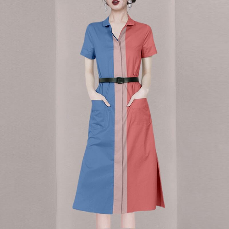 Discount store mall counters withdrawn women's clothing tail goods clearance new casual color contrast dress women's short-sleeved shirt skirt カジュアル スカート missry26064746467 | guttiy