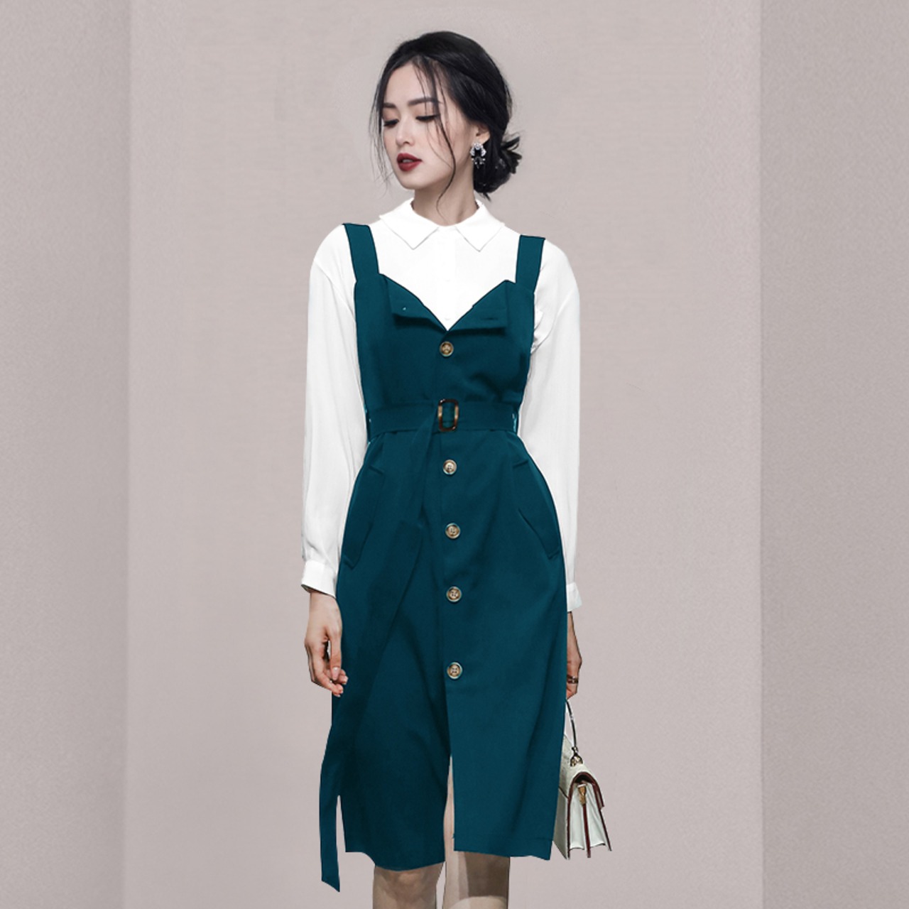 ディスカウントストア モールカウンター引出し 婦人服 テールストック クリアランス 長袖シャツ+ブレストベルトワンピ 2点セット ロング ハーネス missry65245289290 | guttiy