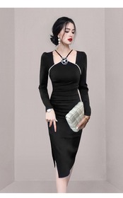 ディスカウント ストア モール カウンター引き出し婦人服テール ストック クリアランス スウィート プリーツ スリム フィット ヒップ ラップ ドレス 大人ガーリー キュート カジュアル missry99115177004 | guttiy