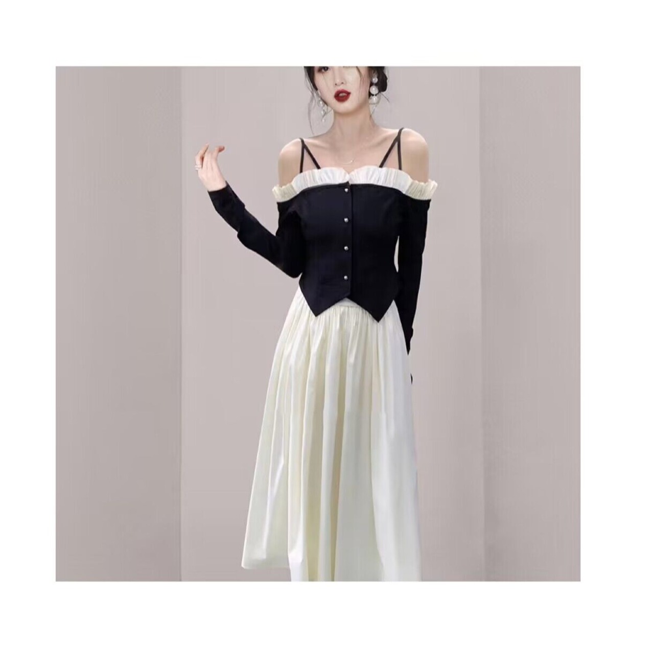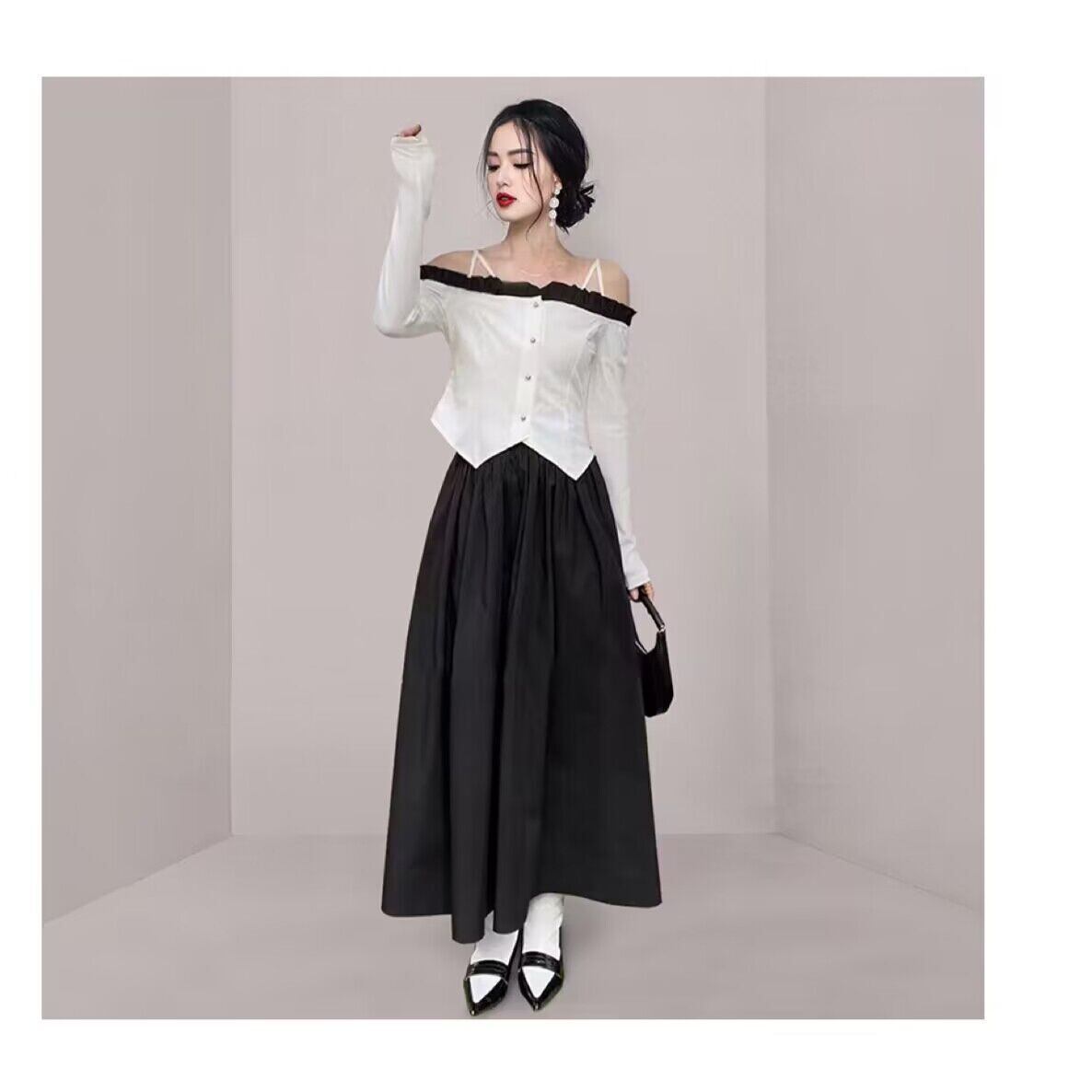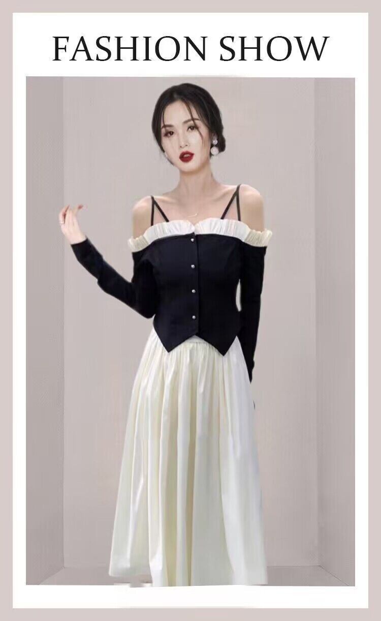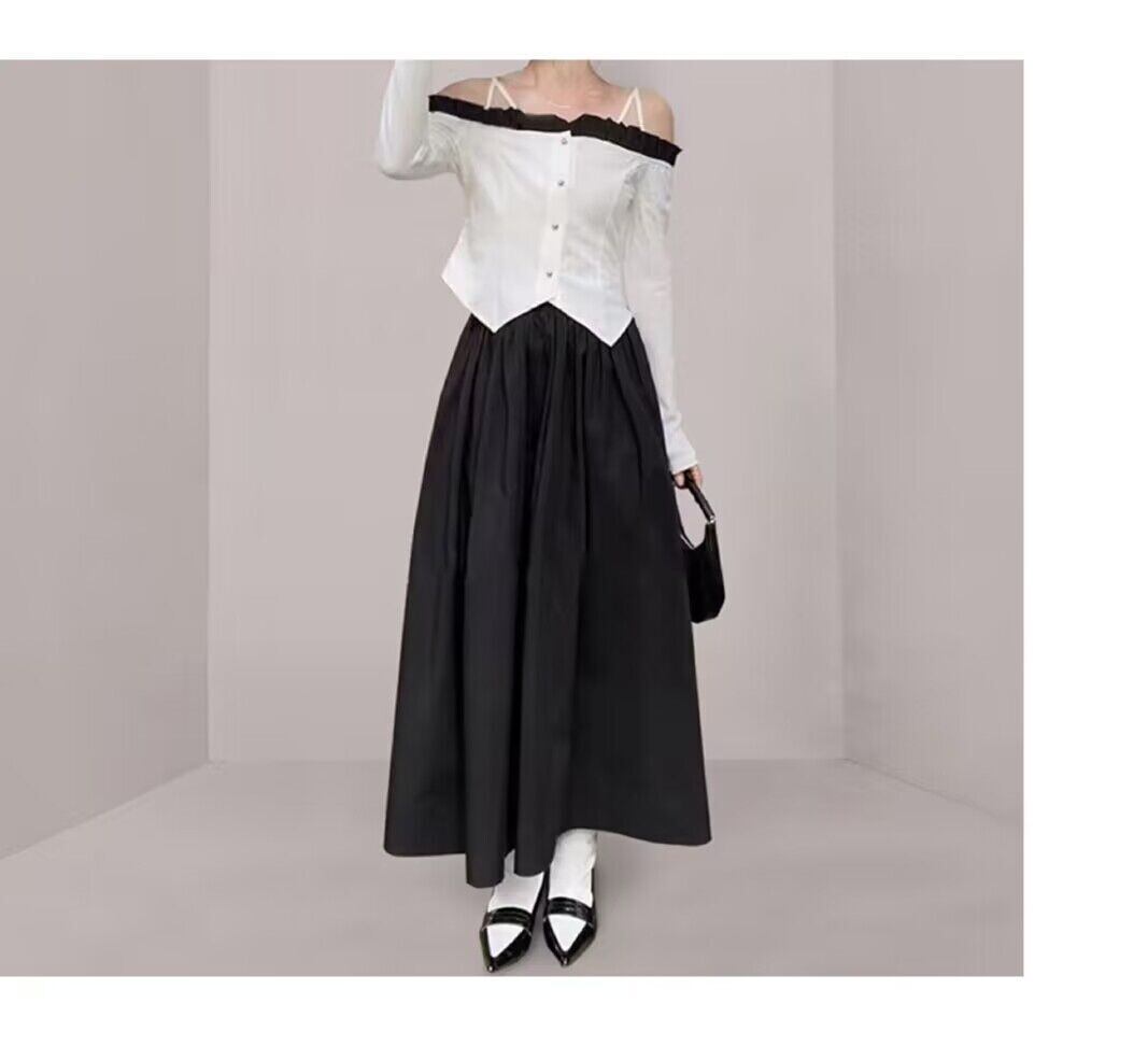 色:白いブラウスブラックドレス,黒のトップと白のスカート