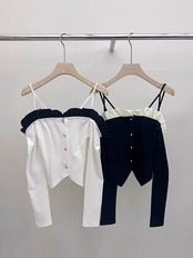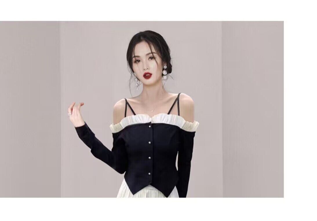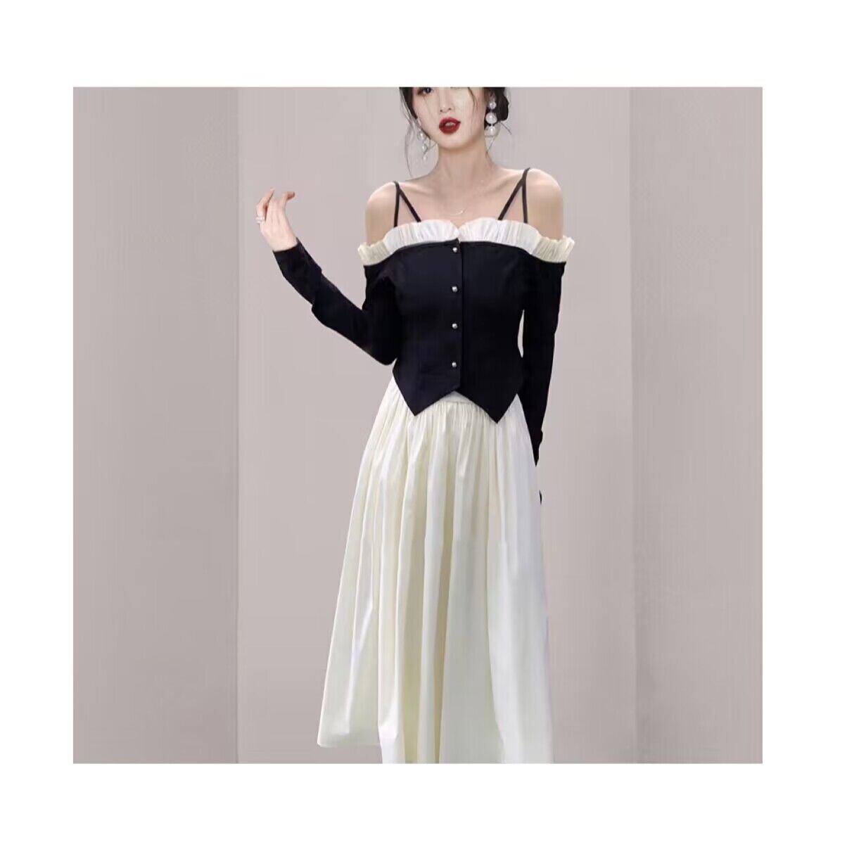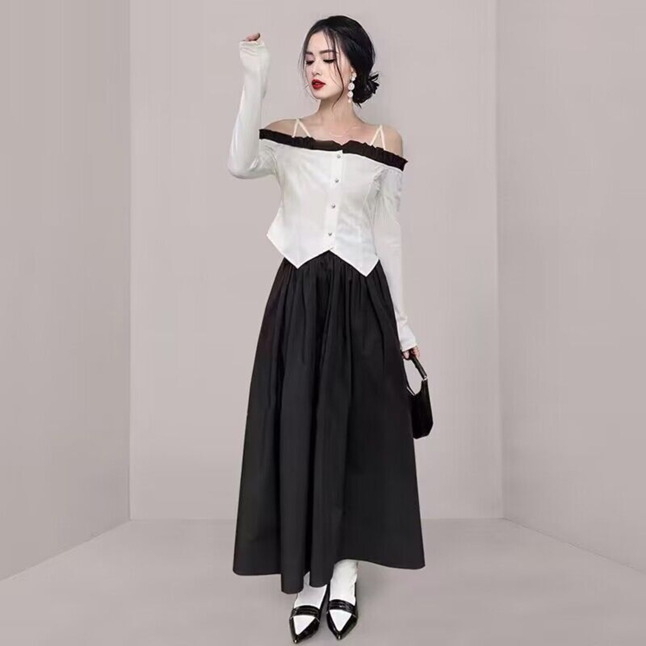 色:白いブラウスブラックドレス,黒のトップと白のスカート
