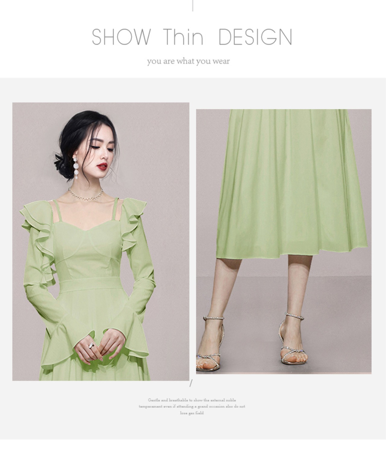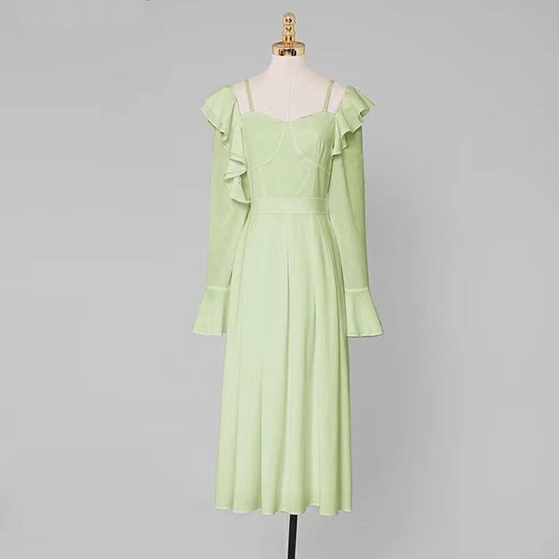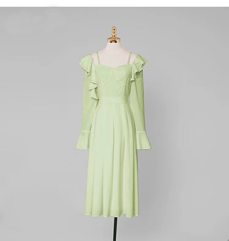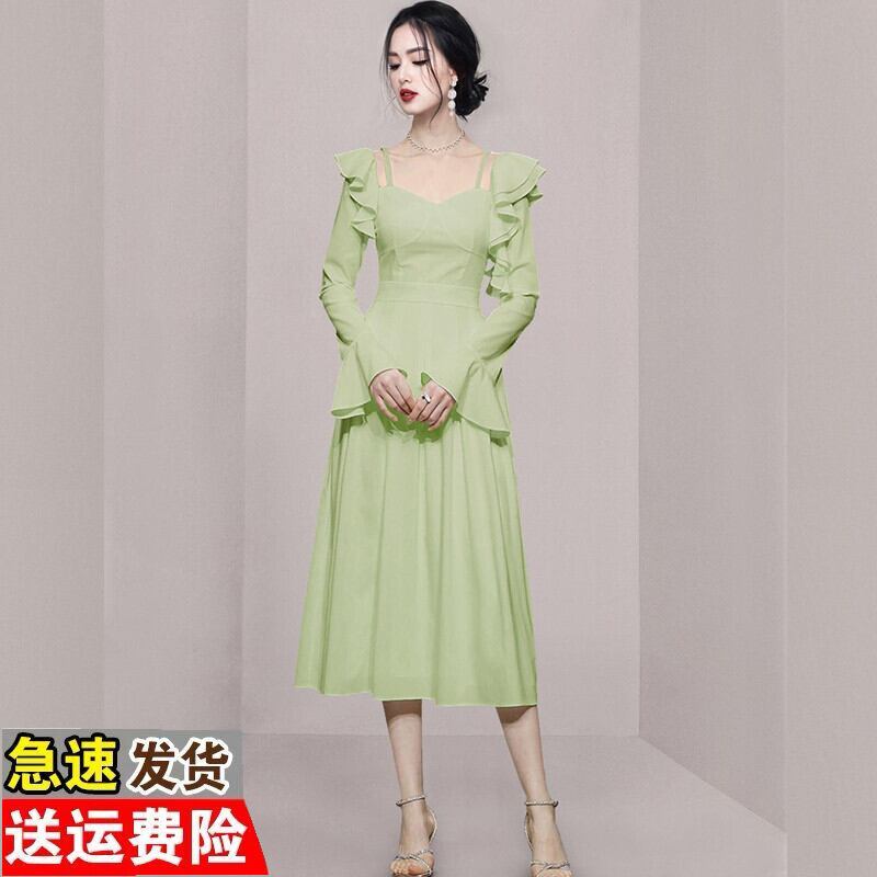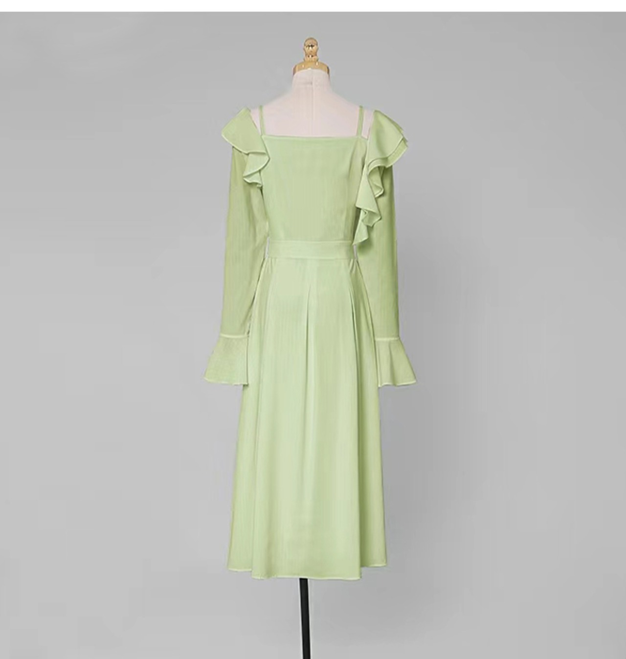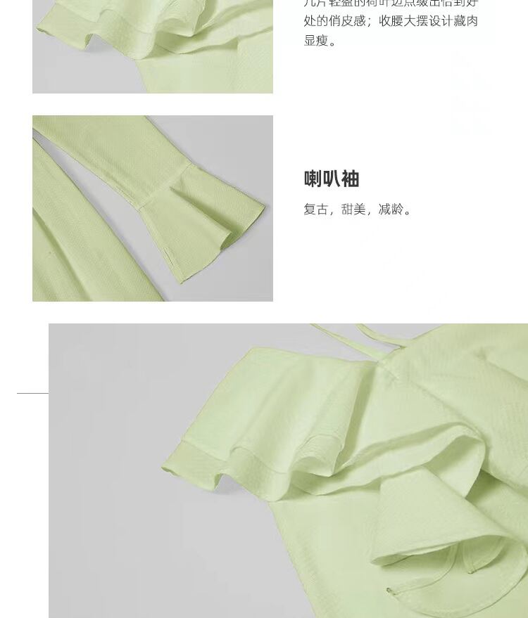 ディスカウントストアモールカウンター引出し婦人服テールストッククリアランススクエアカラーハスリーフトランペットスリーブウエスト痩身ドレス スクウェア missry32270214316 | guttiy