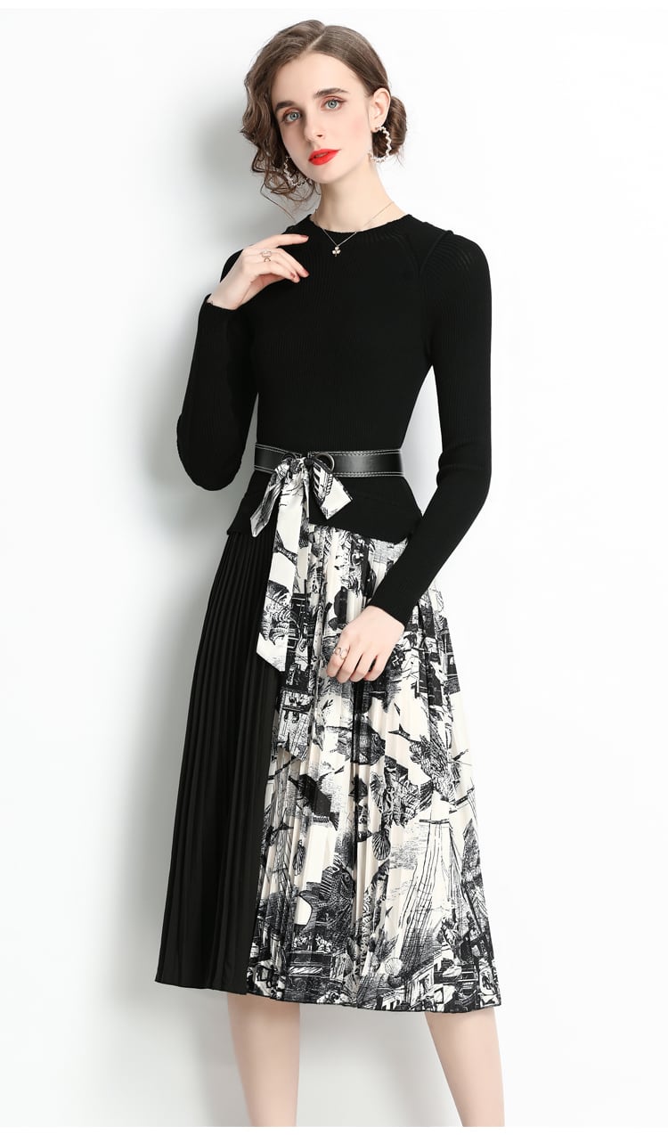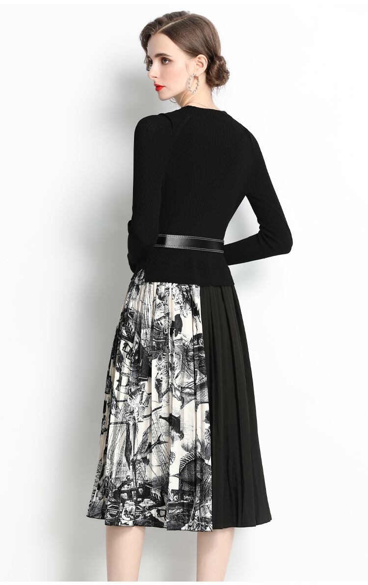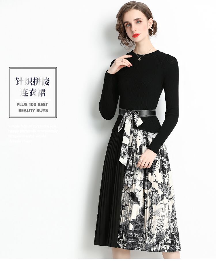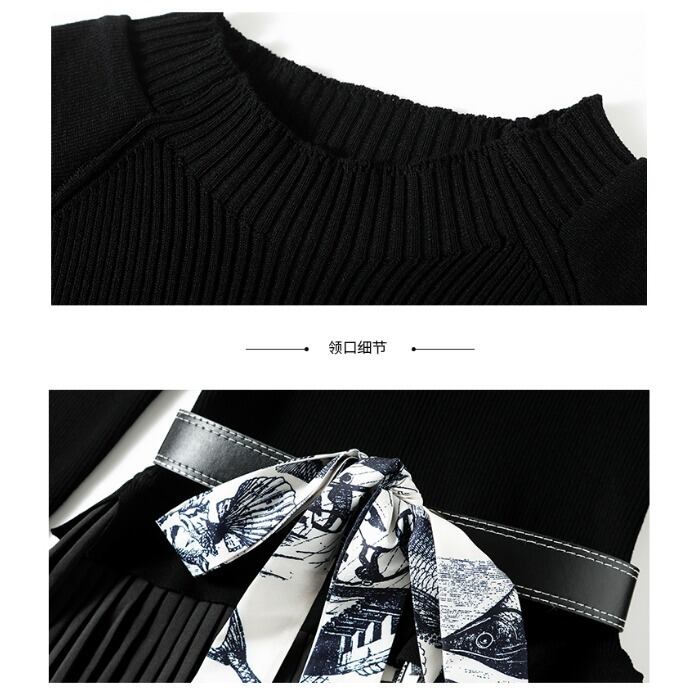 ディスカウントストア モールカウンター引出し 婦人服 テールストック クリアランス ニット ステッチ コントラストカラー プリーツスカート ワンピース レディース missry44547063106 | guttiy