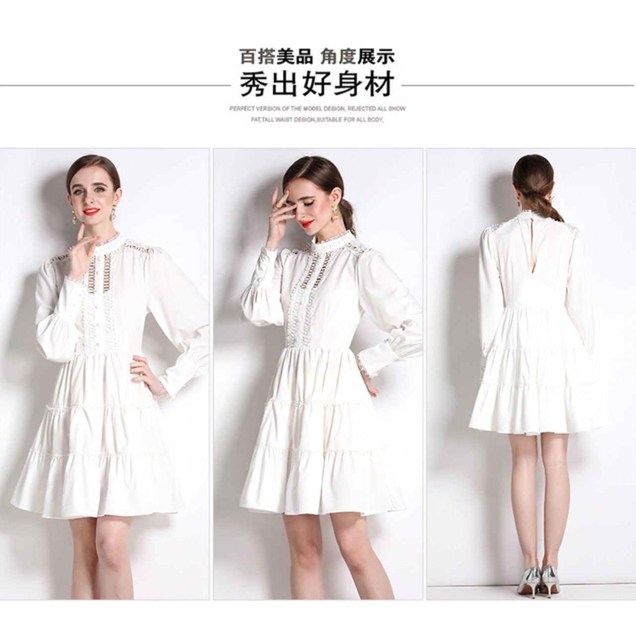 ディスカウントストアモールカウンター引き出し婦人服テールストッククリアランスランタンスリーブ中空花ハイウエストレディドレス ハイウェスト フラワーデザイン missry41116461062 | guttiy
