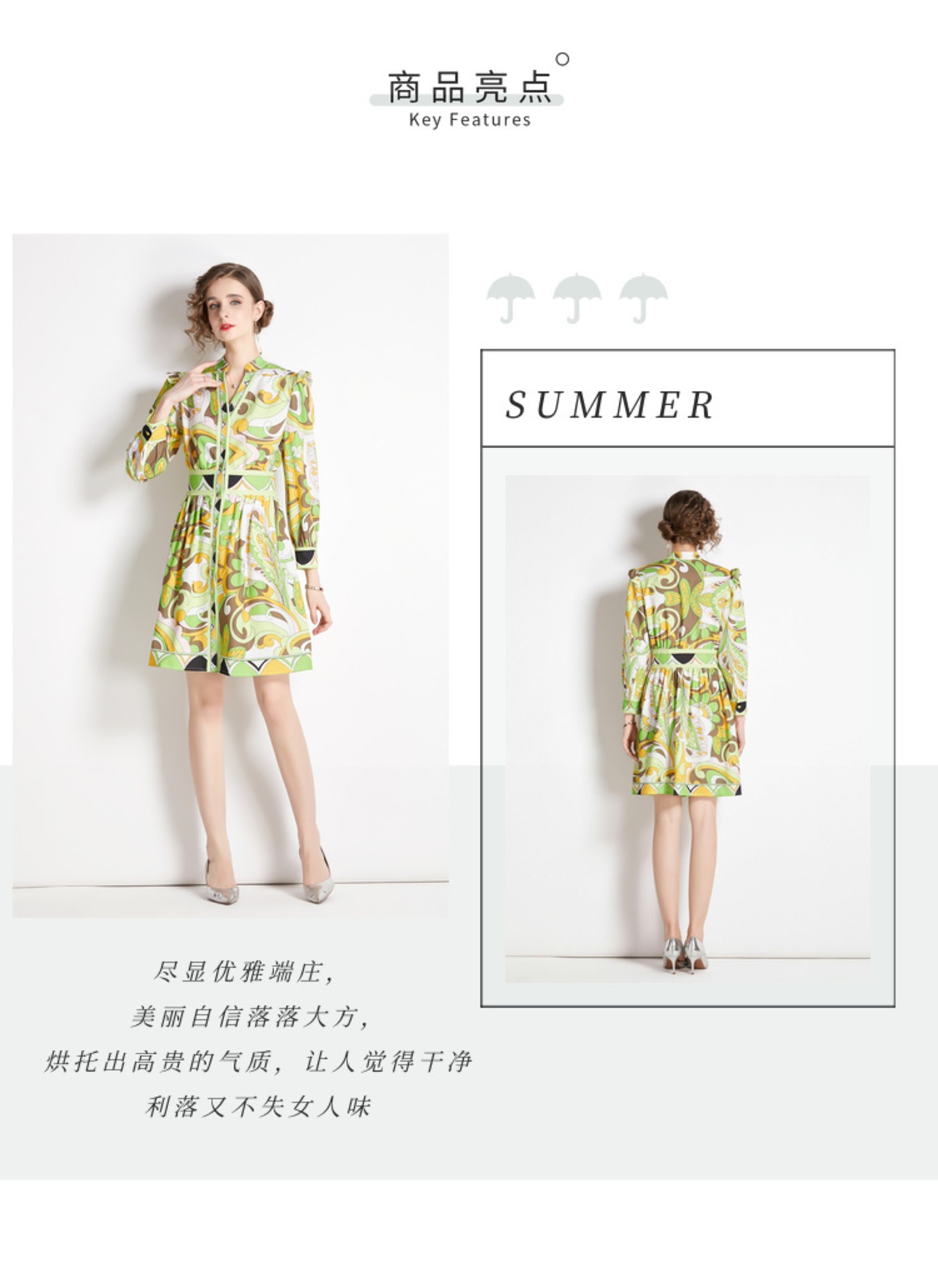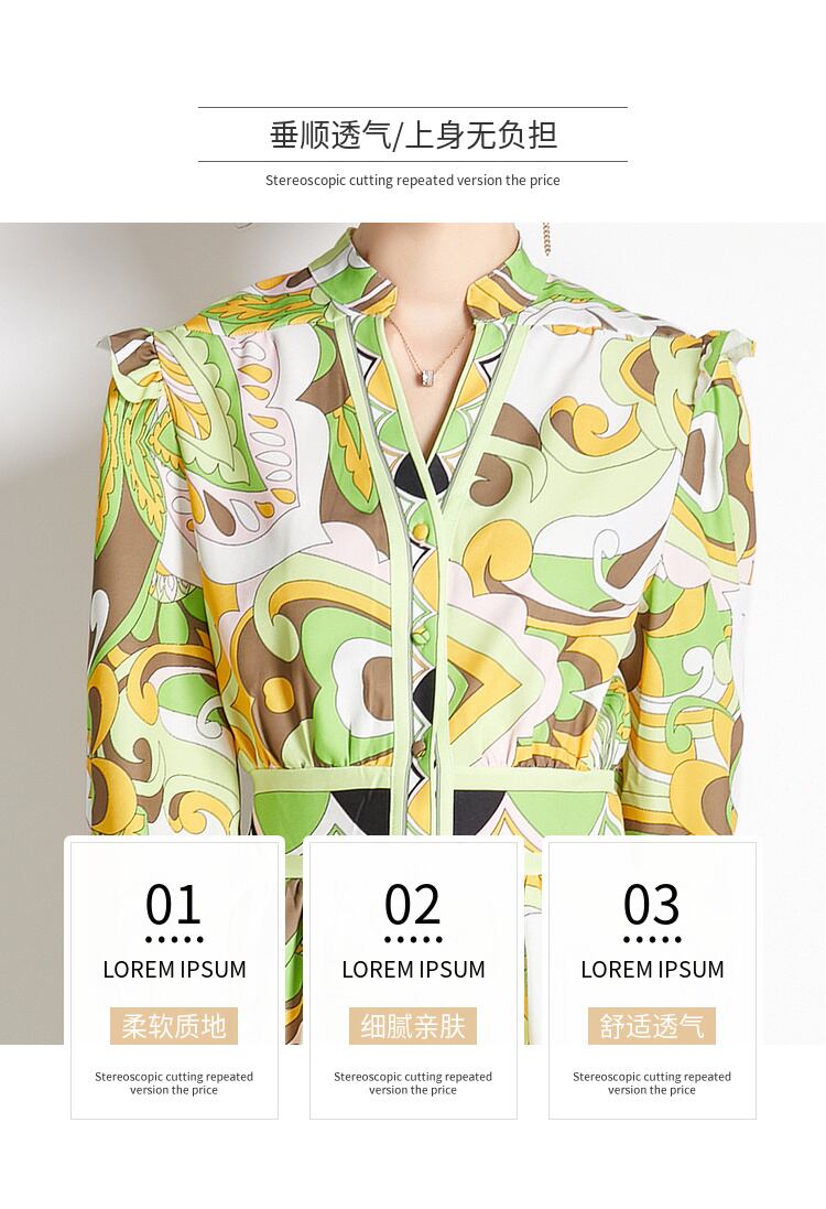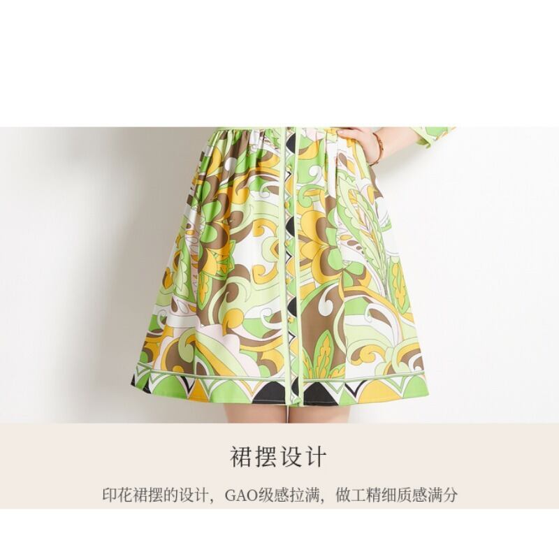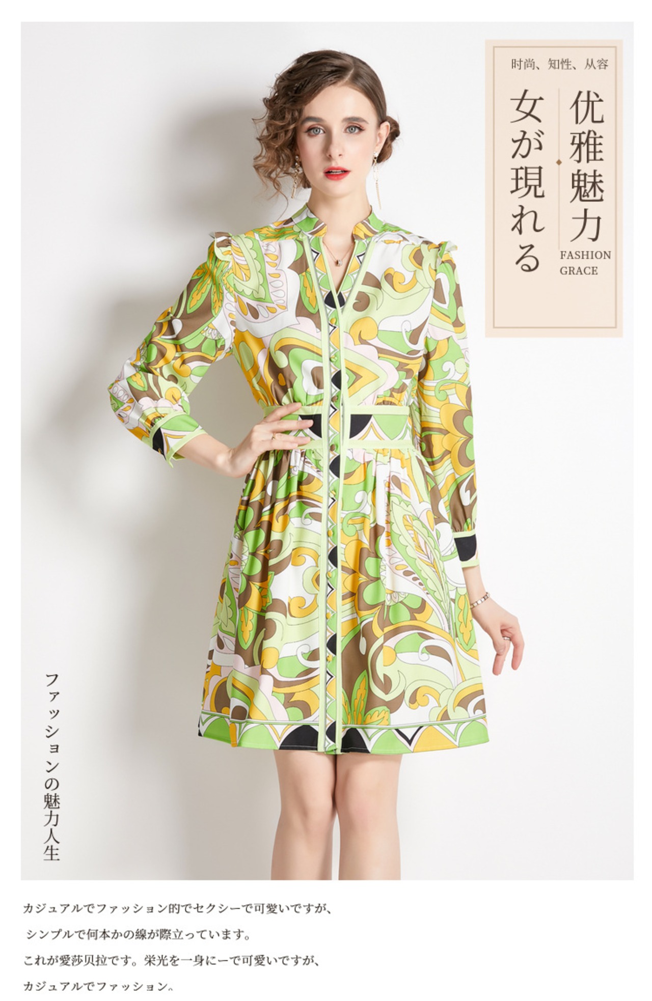 ディスカウントストア モールカウンター 引き出し 婦人服 テールストック クリアランス ポジショニング プリントワンピース Vネック 長袖 ハイウエスト ミッドスカート ロング missry26234373446 | guttiy