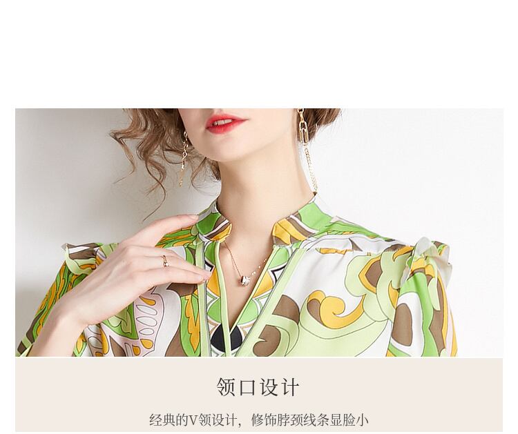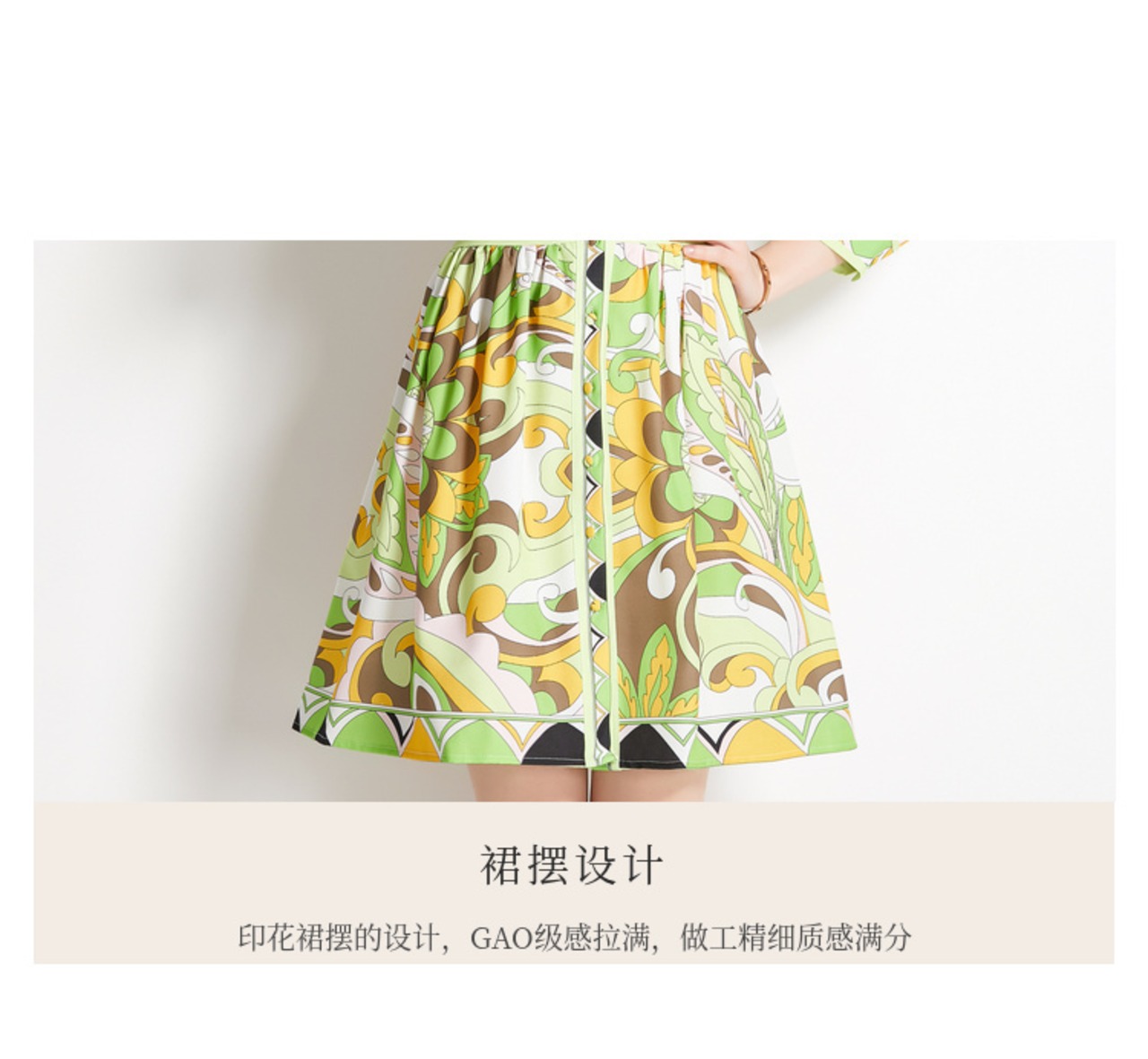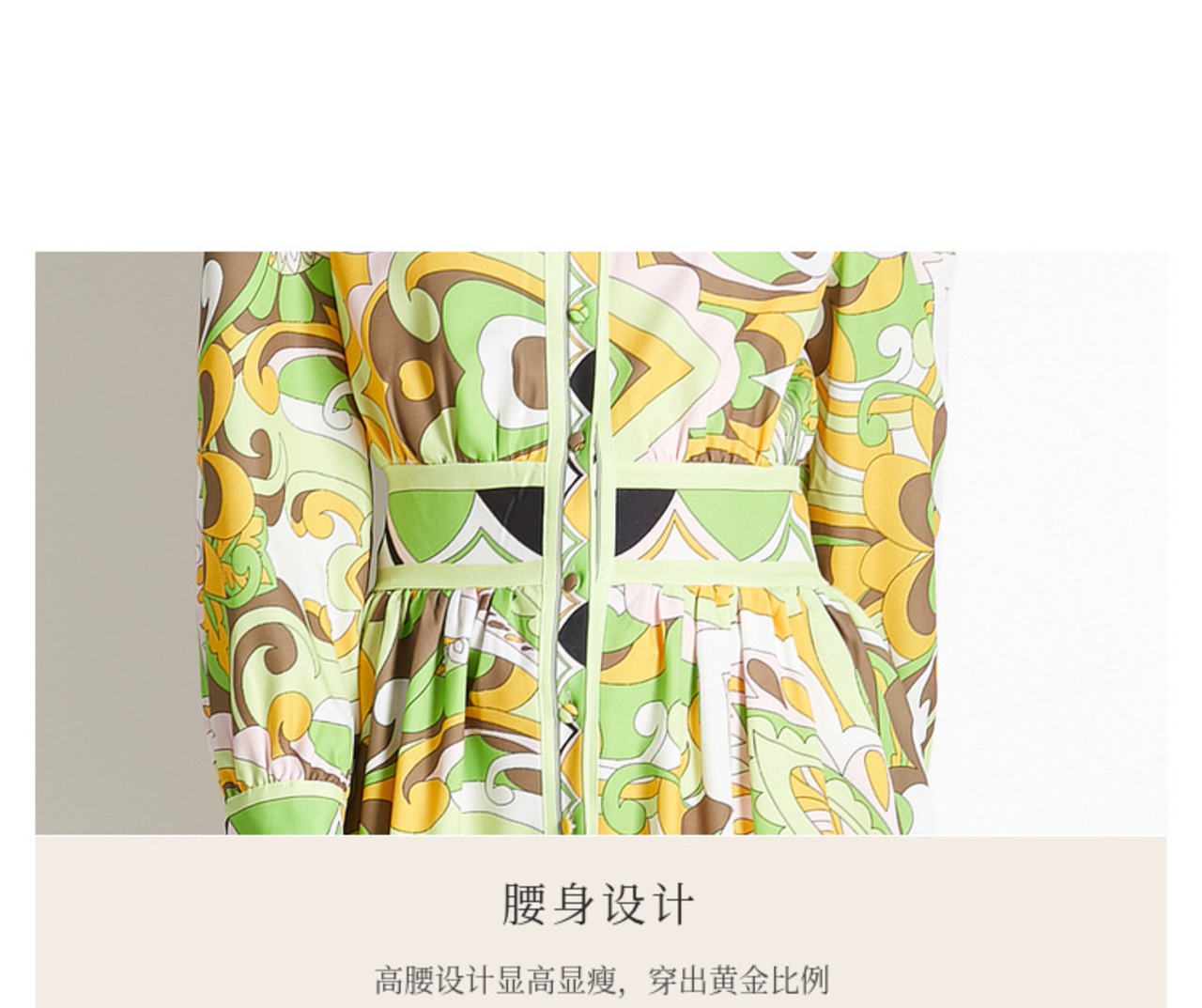 ディスカウントストア モールカウンター 引き出し 婦人服 テールストック クリアランス ポジショニング プリントワンピース Vネック 長袖 ハイウエスト ミッドスカート ロング missry26234373446 | guttiy
