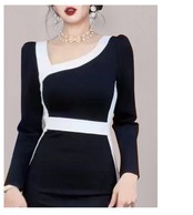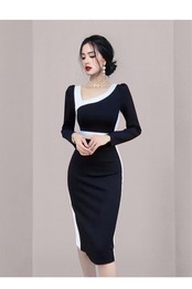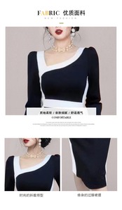 ディスカウントストア モールカウンター引出し レディース テールストック クリアランス 痩身 白黒スプライシング コントラストカラー スロープショルダーワンピース ホワイト ブラック missry91388757116 | guttiy