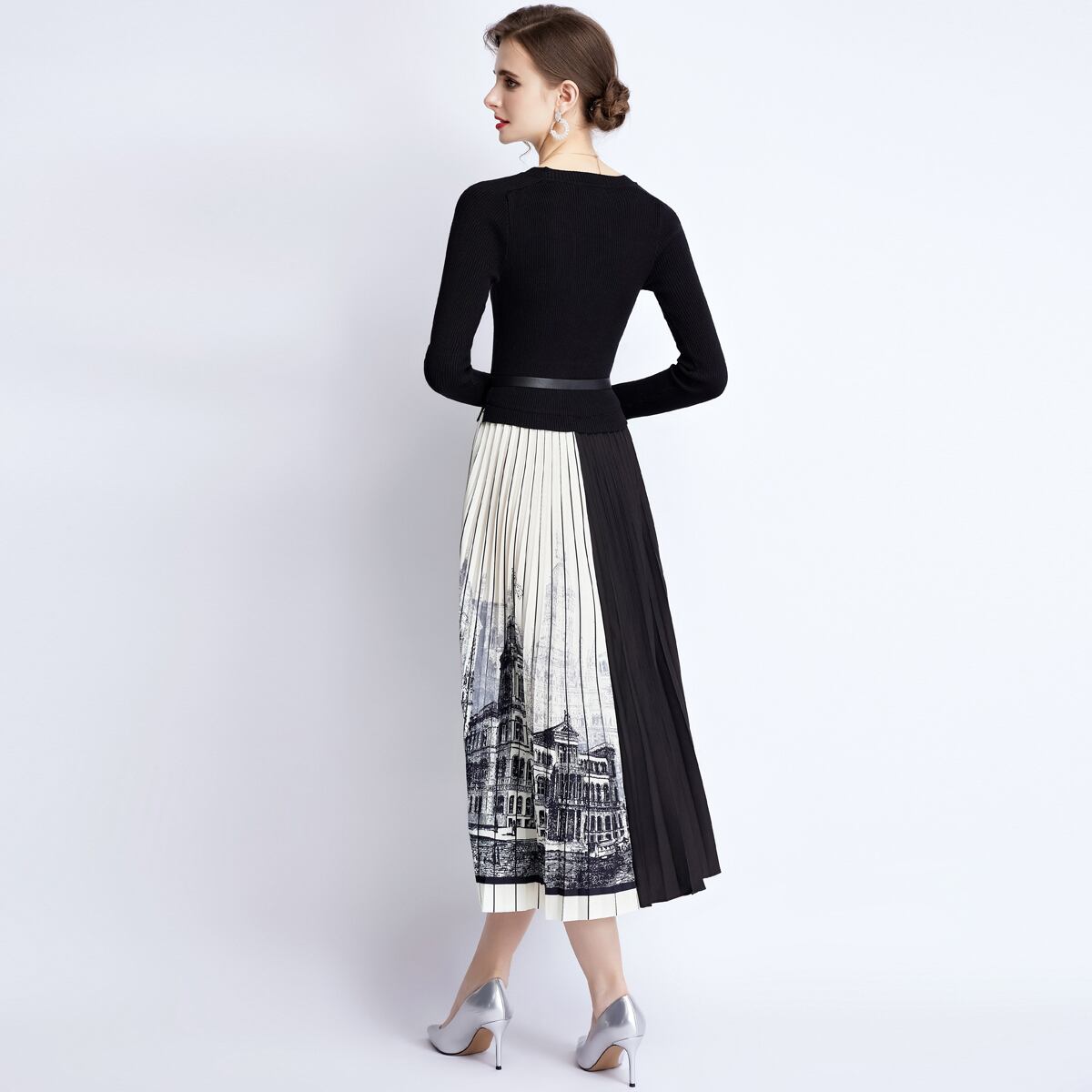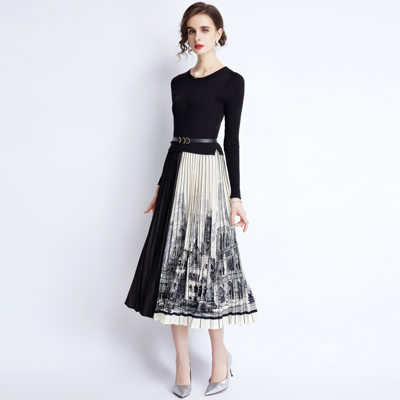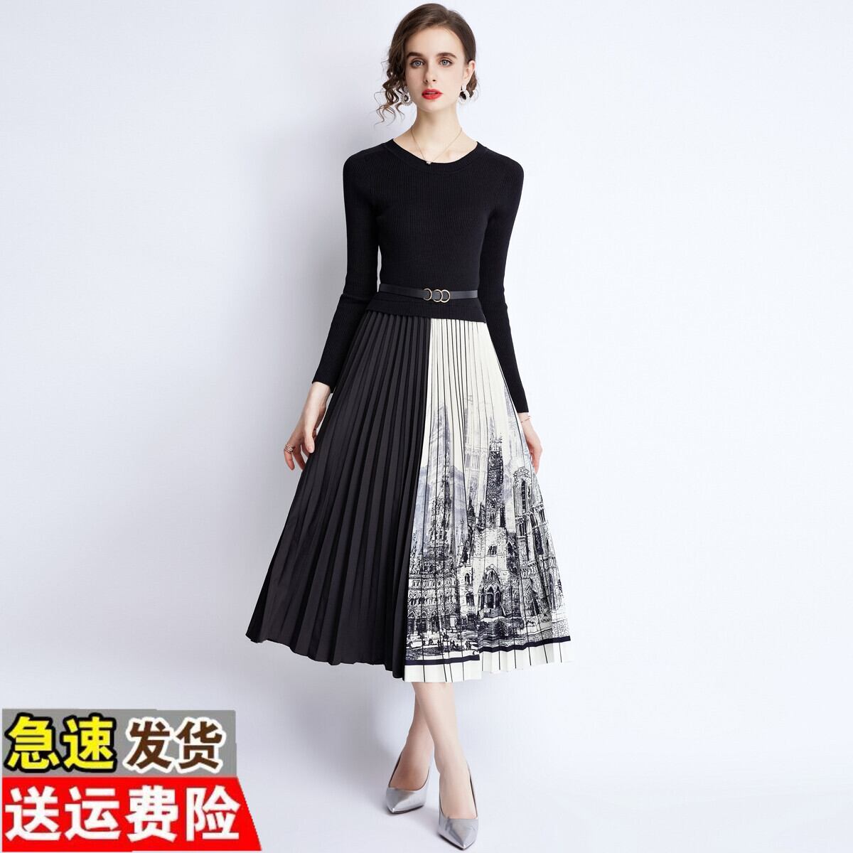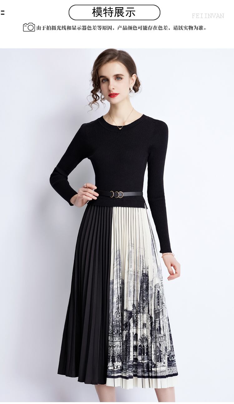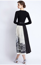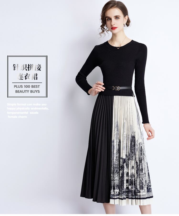 ディスカウントストア モールカウンター引出し 婦人服 テールストック クリアランス ニット ステッチ コントラストカラー プリーツスカート ワンピース レディース missry32282251421 | guttiy