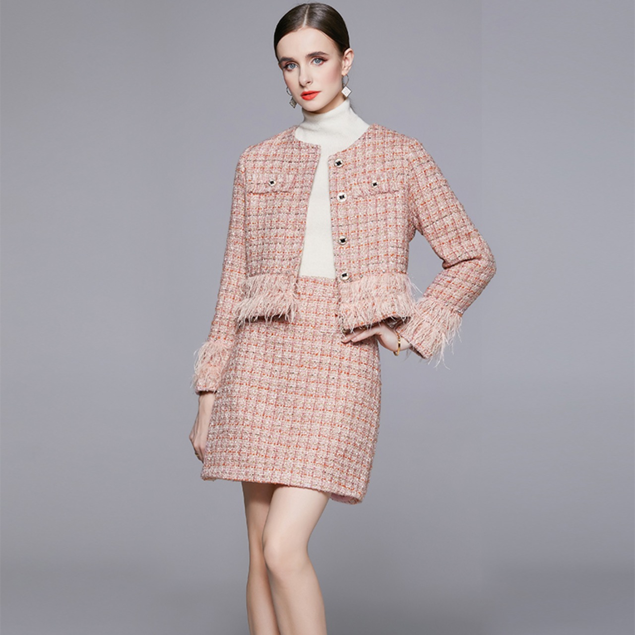 ディスカウントストアモールカウンター撤退婦人服テールストッククリアランスオーストリッチファーコート秋冬ツイードスモールフレグランススーツ オータム 秋物 ウィンター 冬物 missry54693788181 | guttiy
