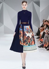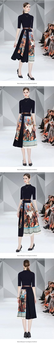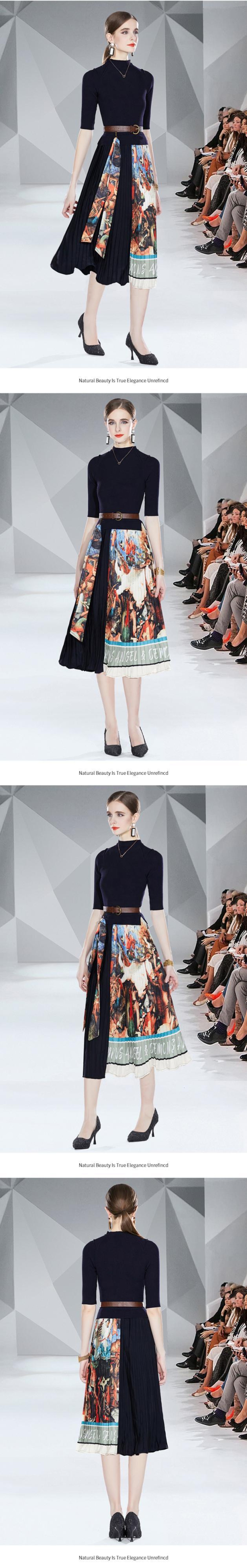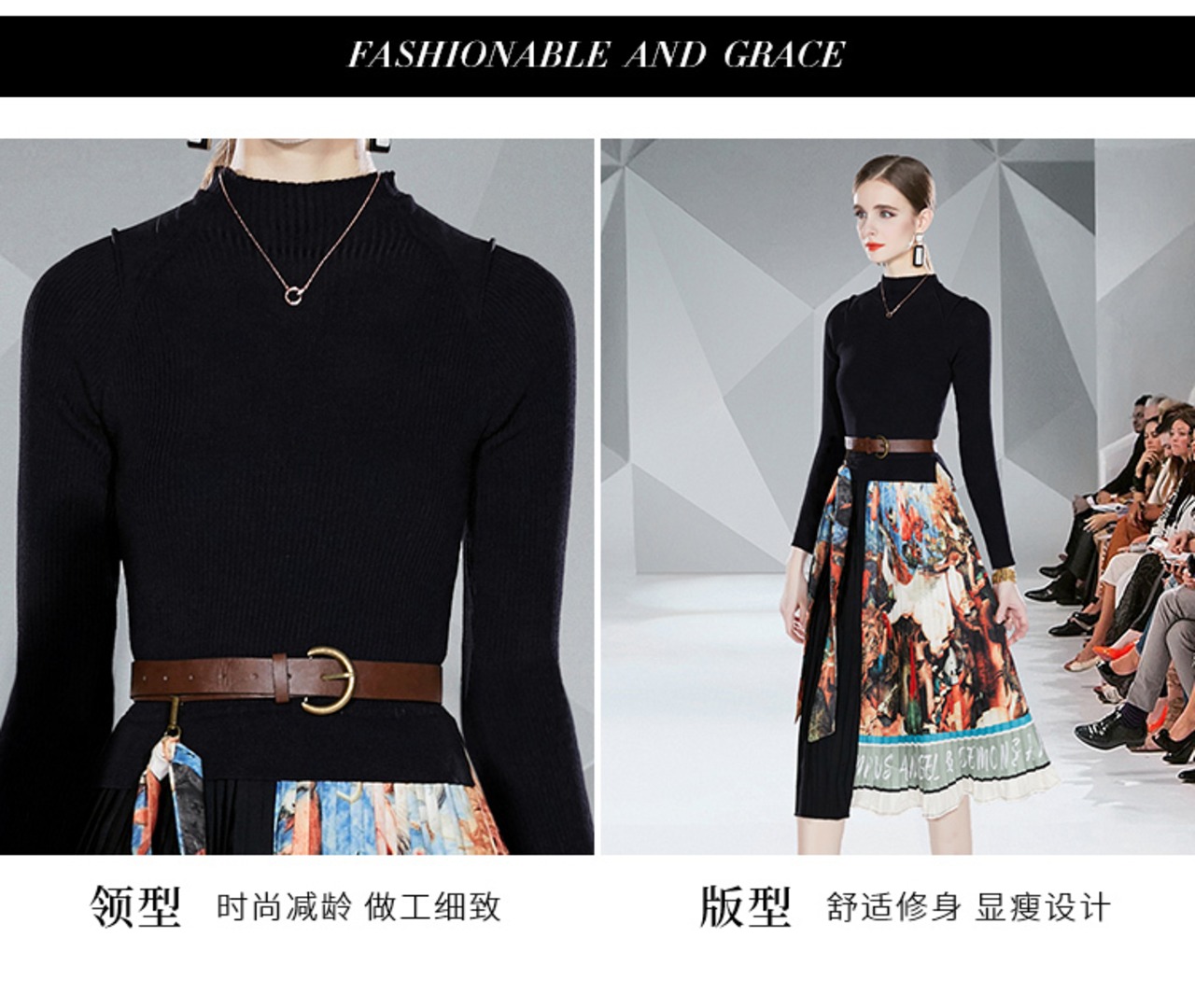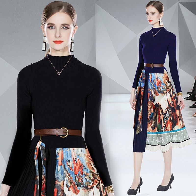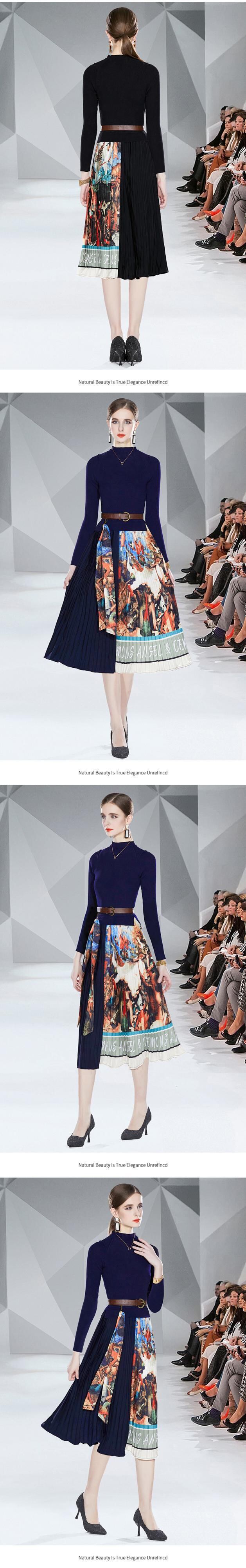ディスカウントストアモールカウンター撤退婦人服テールストッククリアランス小さなフレグランススタイル長袖ハイウエストプリーツニットワンピース ロング missry75358673701 | guttiy