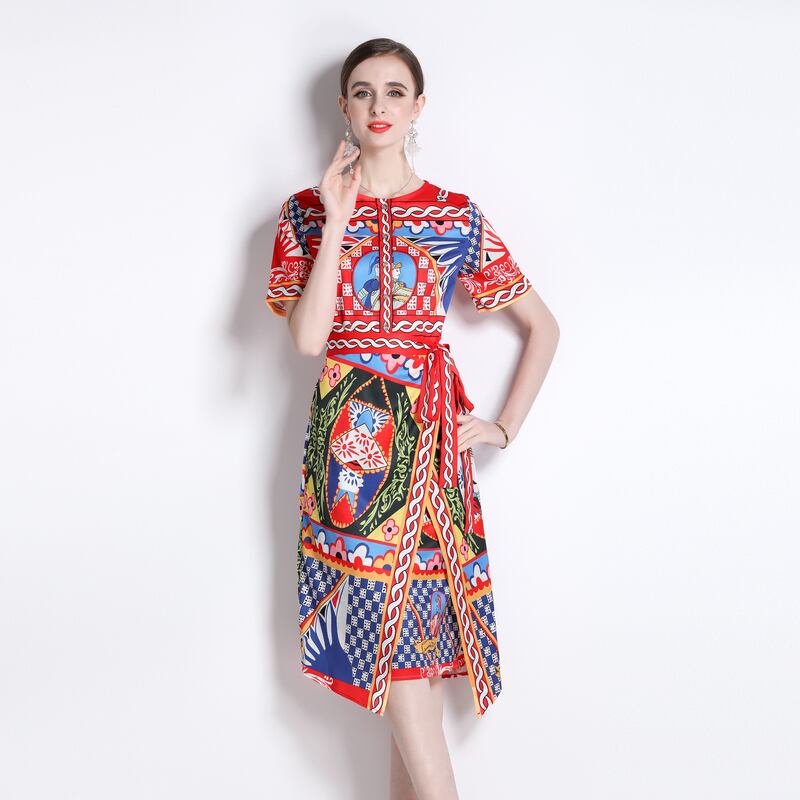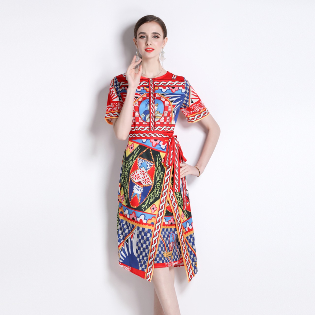 ディスカウントストア モールカウンター引出し 婦人服 テールストック クリアランス プリントカラーワンピース ウエストタイベルト 痩身ワンピース ハーネス missry17706933595 | guttiy