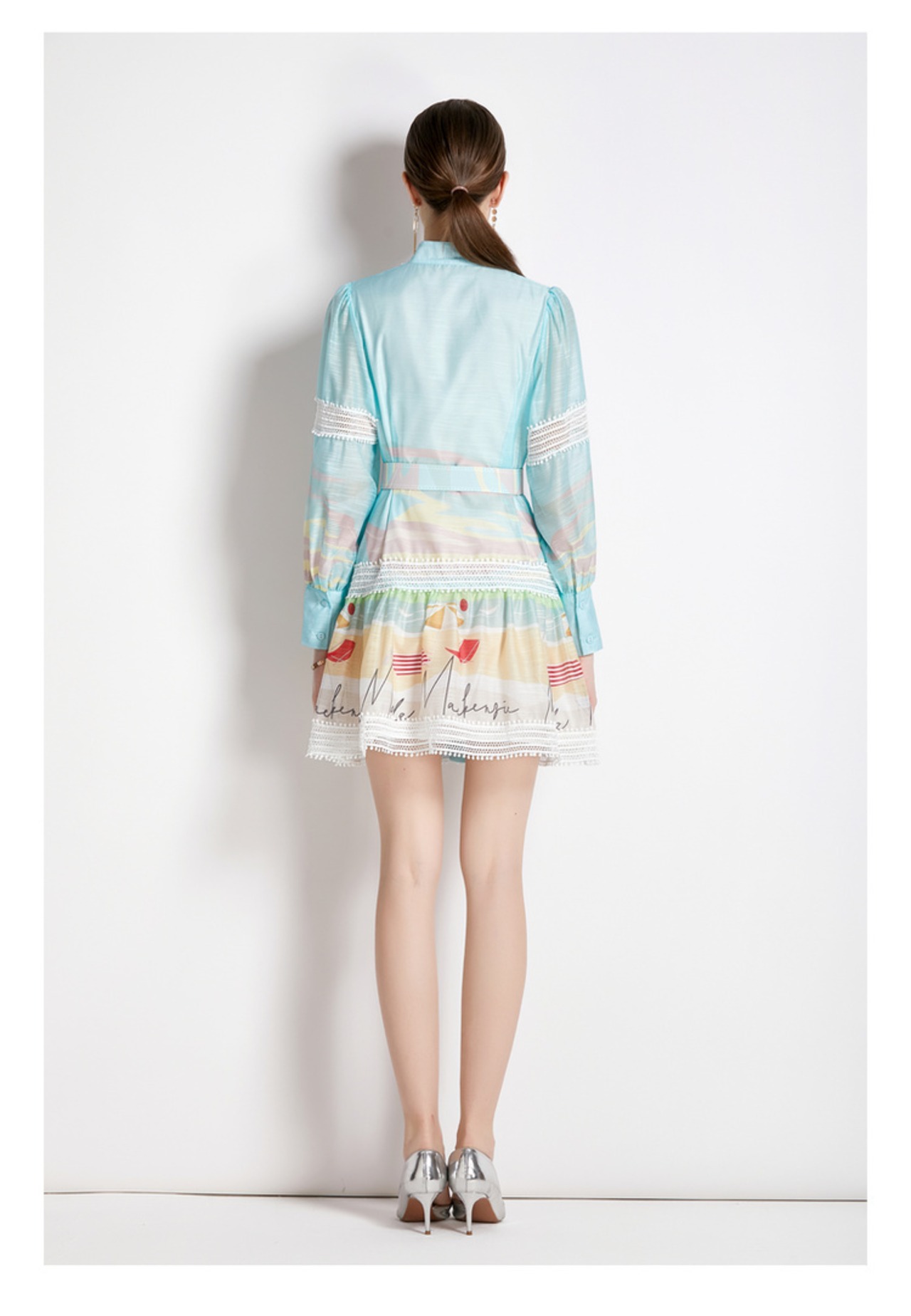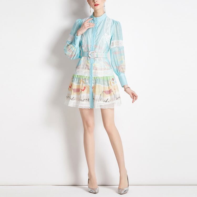 ディスカウントストア モールカウンター 引き出し 婦人服 テールストック クリアランス スタンドカラー ショートスカート 長袖 イレギュラー プリント Aライン スカート ロング missry90116669583 | guttiy