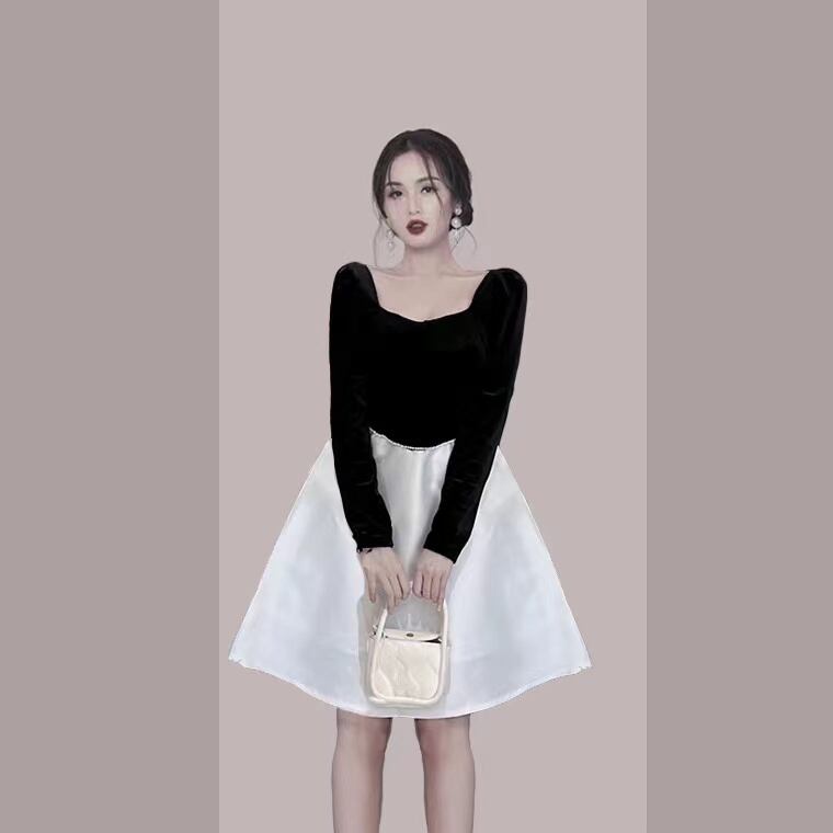 ディスカウントストア モール カウンター 引き出し 婦人服 テール グッズ クリアランス ゴールドベルベット コントラストカラー フェイクツーピース ワンピース レディース missry6085219842 | guttiy