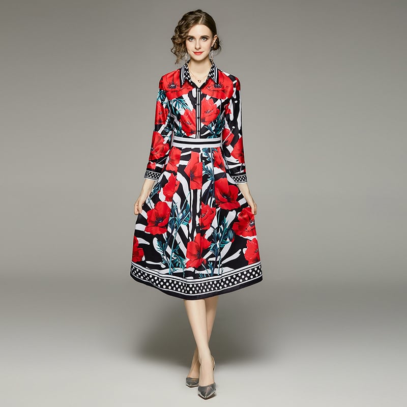 ディスカウントストア モールカウンター 引出し 婦人服 テール グッズ クリアランス オールマッチ スリムウエスト ウエスト位置 プリントワンピース missry8810630642 | guttiy