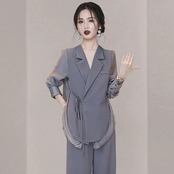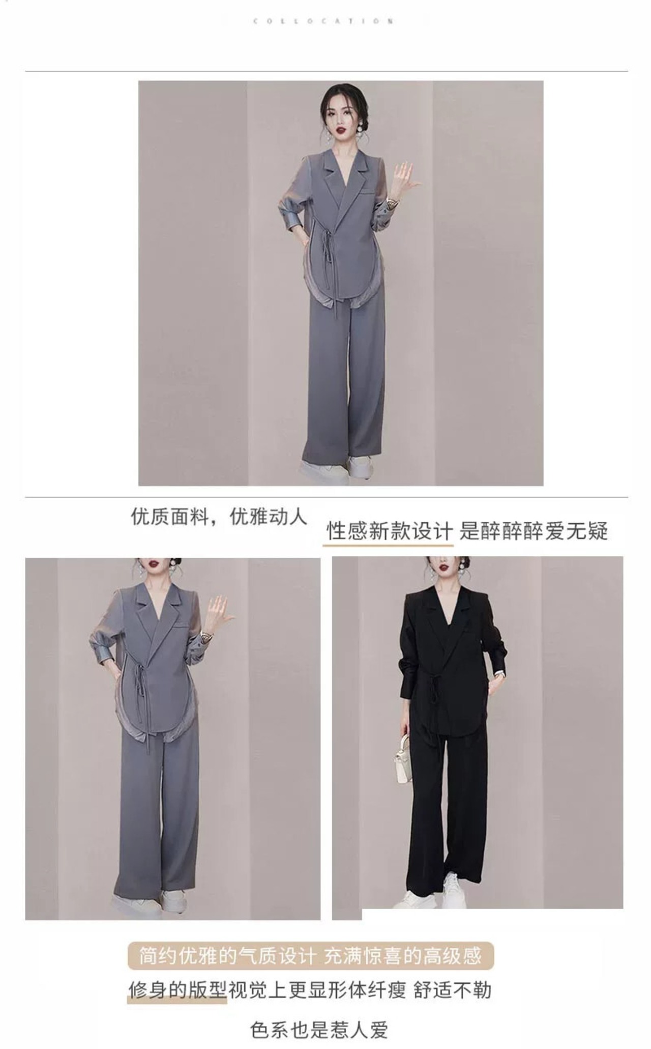 ディスカウントストアモールカウンター引き出しレディーステールグッズクリアランスプライシングフェイクツーピースタイアップスーツワイドパンツ2点セット missry13213011833 | guttiy
