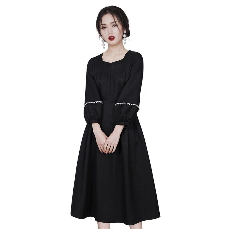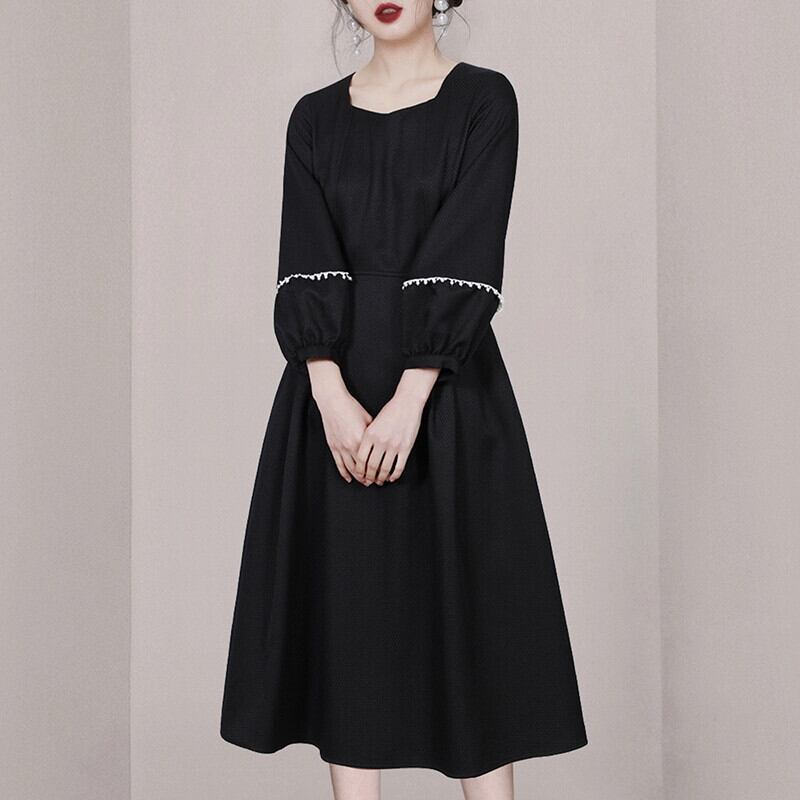ディスカウントストアモールカウンター引き出し婦人服テールストッククリアランスウエスト細い気質ヘボン式スクエアカラーリトルブラックドレス スクウェア missry47161208216 | guttiy