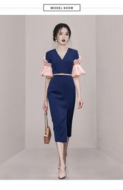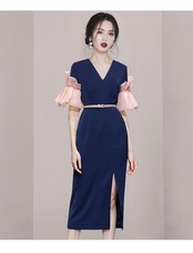 ディスカウントストア モール カウンター 引き出し 婦人服 クリアランス クリアランス 蓮の葉 花びら 袖スリット ヒップ ラップ ドレス レディース missry81594032639 | guttiy