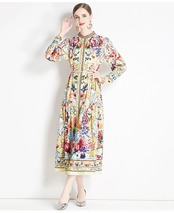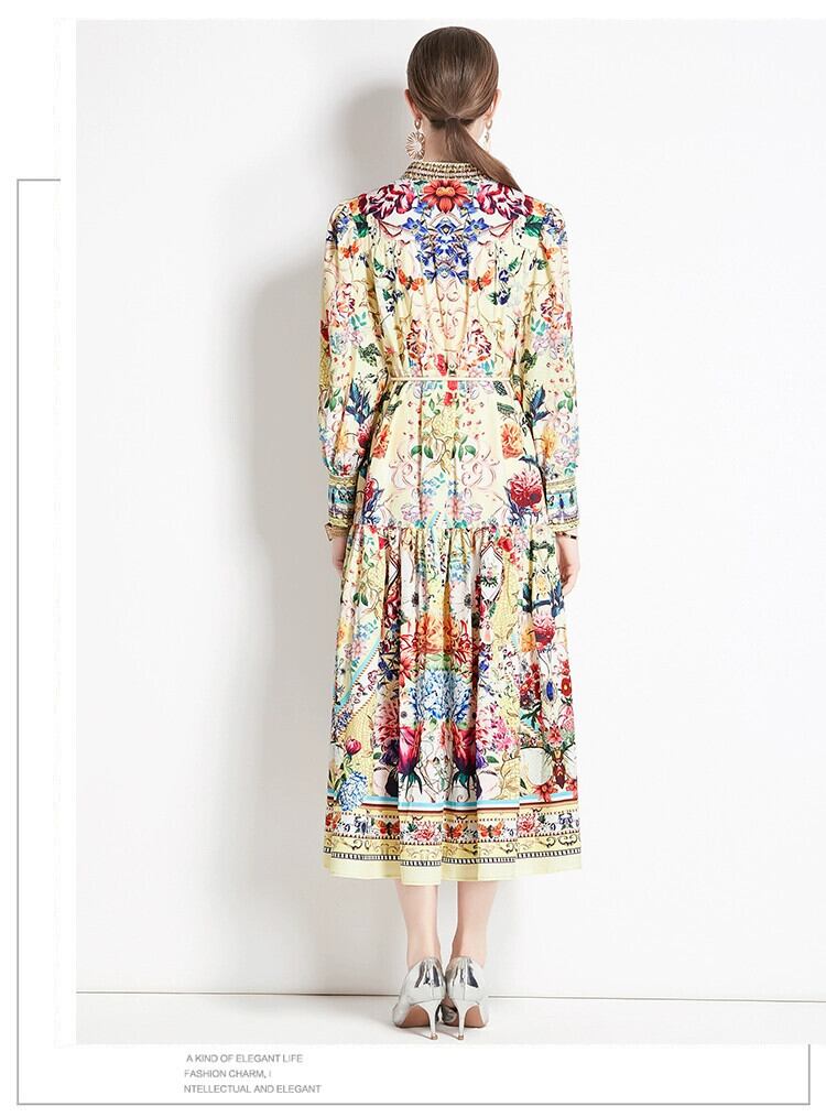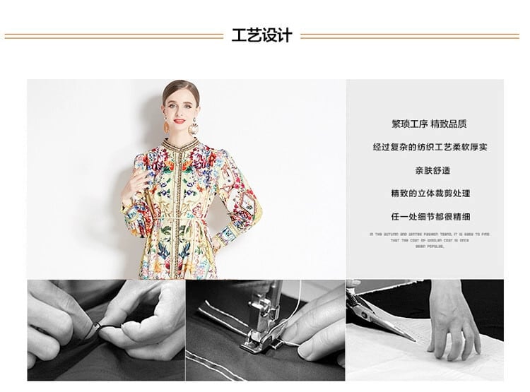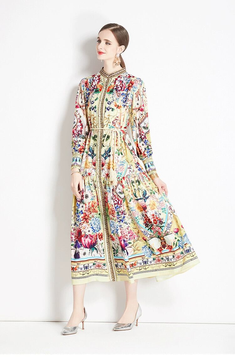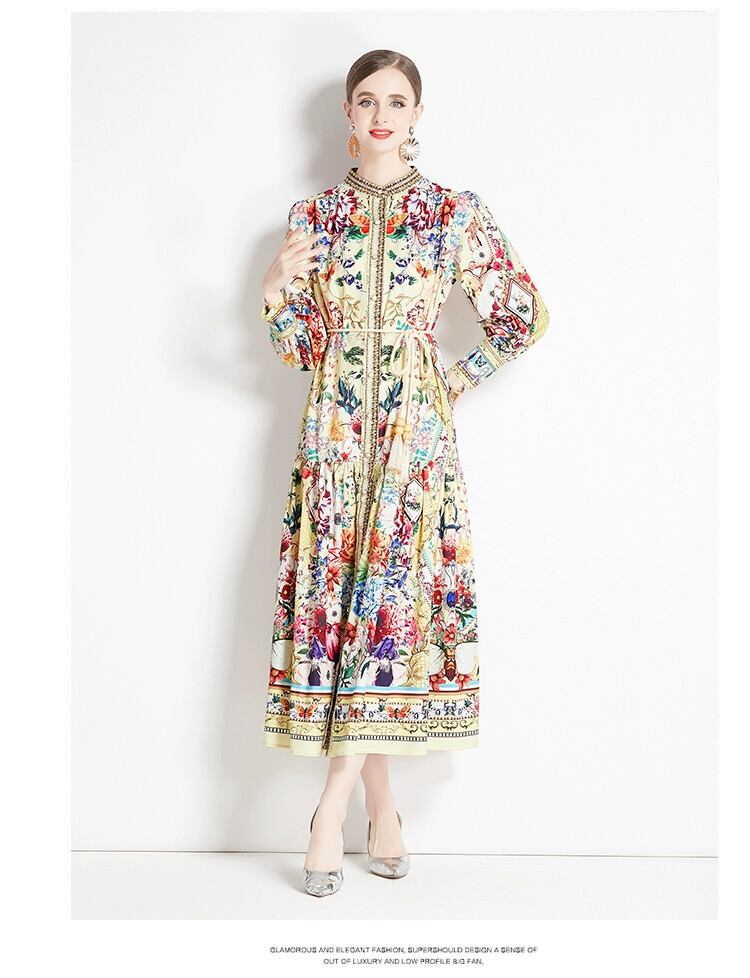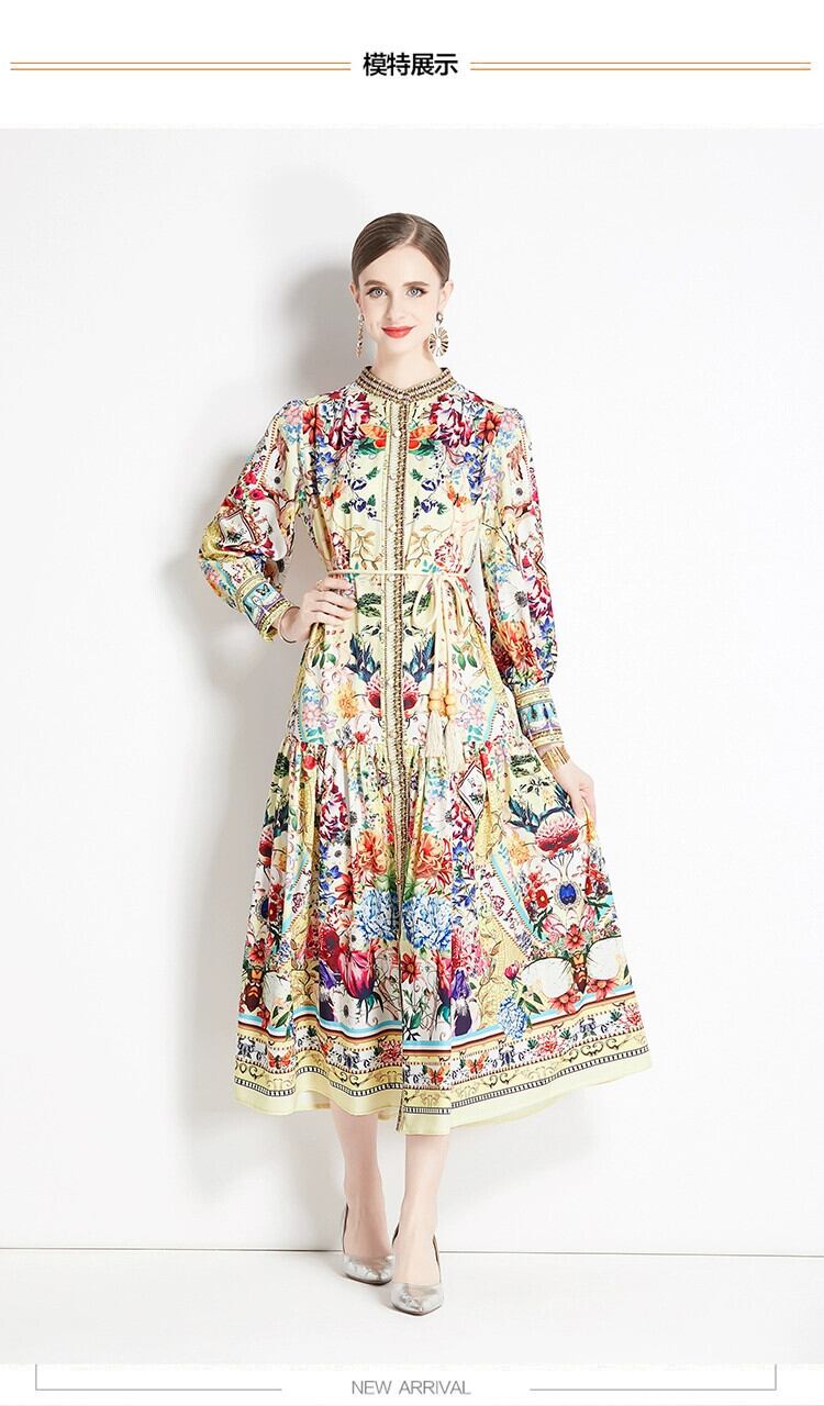 ディスカウントストア モール カウンター 引き出し 婦人服 クリアランス スタンドカラー ランタン袖 プリント ワンピース ロングスカート ランタンスリーブ missry37689938317 | guttiy