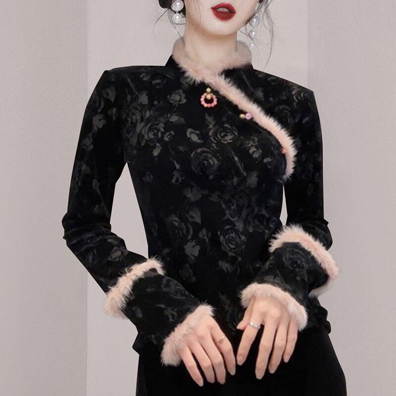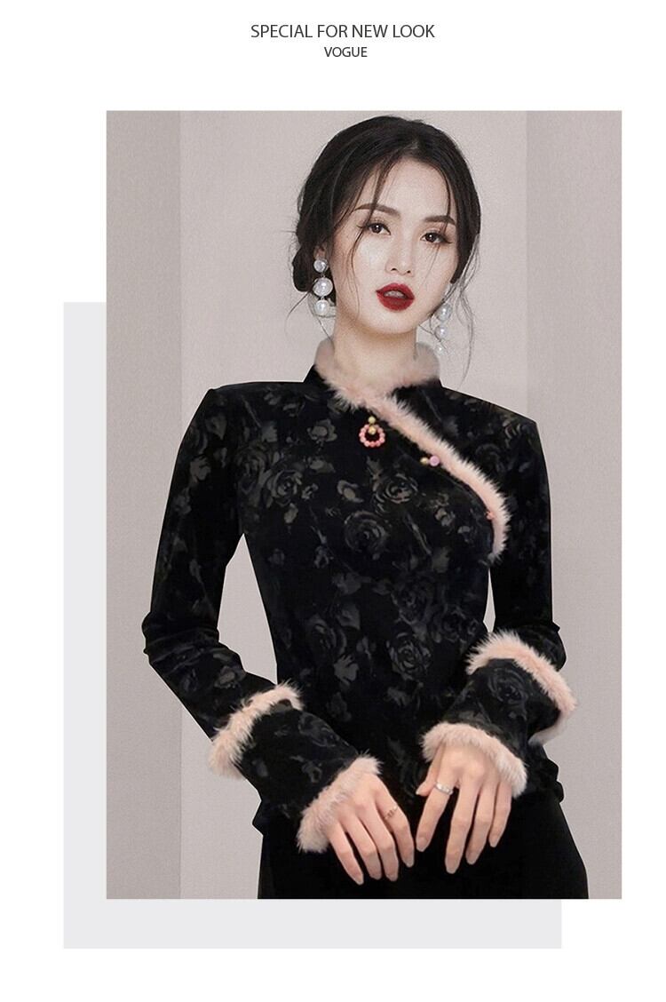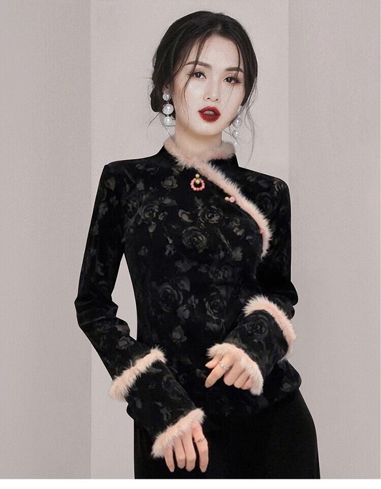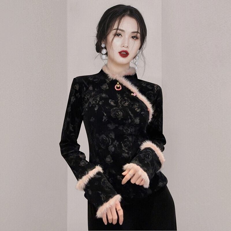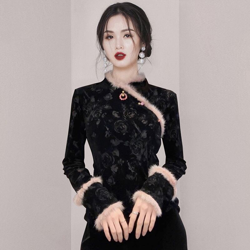 ディスカウントストアモールカウンター引き出し婦人服クリアランスクリアランス新しい中国風国民風改良された秋冬のブラックトップ女性 オータム 秋物 ウィンター 冬物 missry27493917294 | guttiy