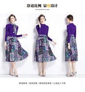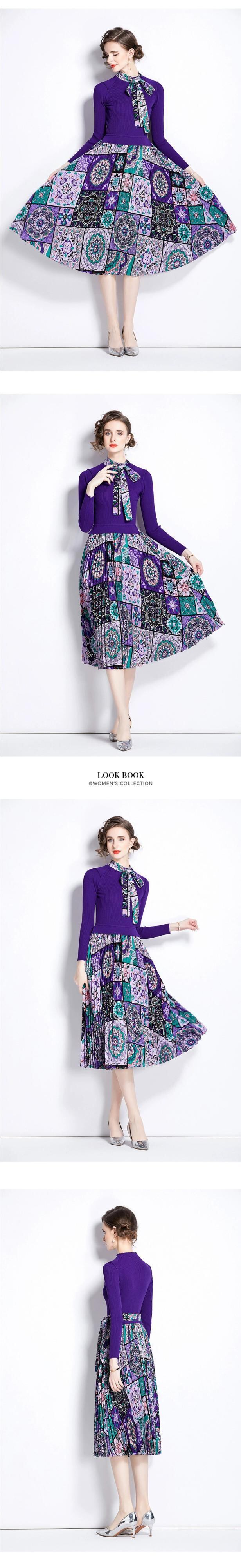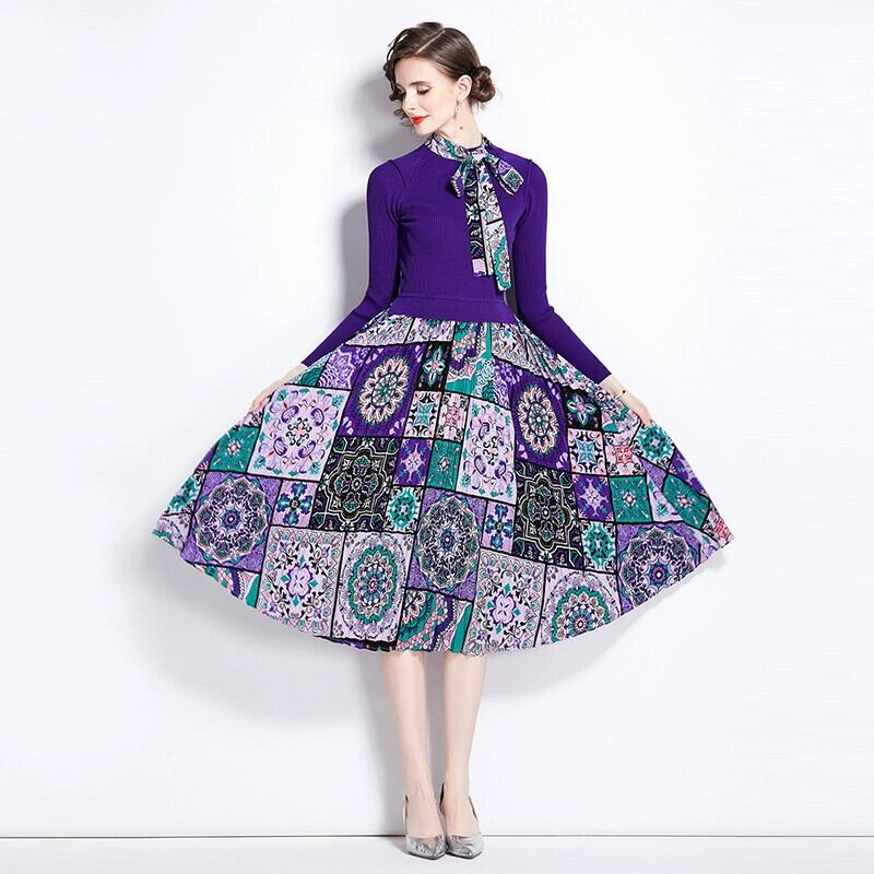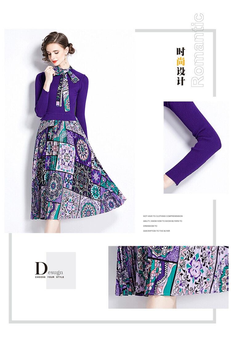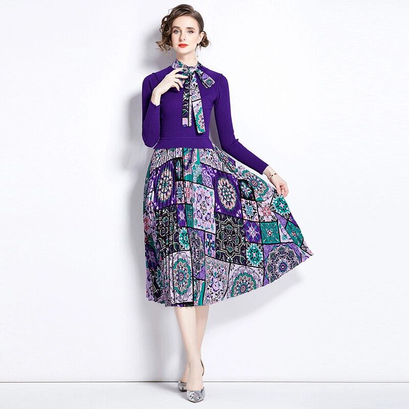 ディスカウントストアモールカウンター引き出し婦人服クリアランスラウンドネックセーターパッチワークプリントレースアップ長袖ワンピース ロング Oネック missry89079307632 | guttiy