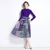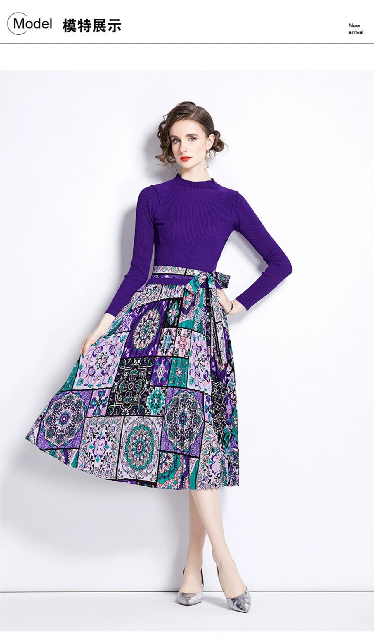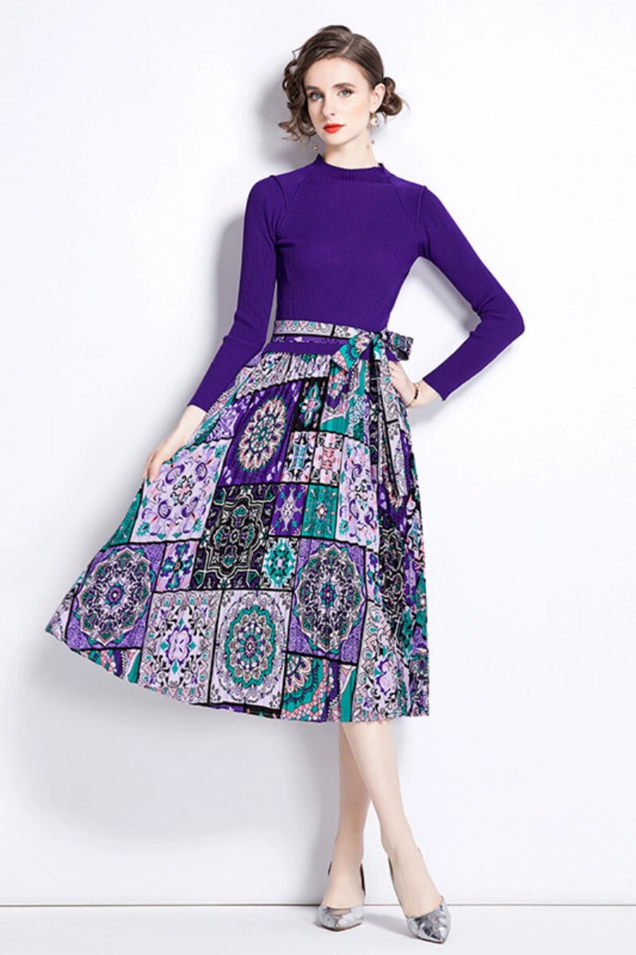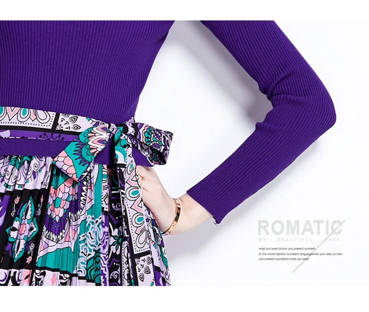 ディスカウントストアモールカウンター引き出し婦人服クリアランスラウンドネックセーターパッチワークプリントレースアップ長袖ワンピース ロング Oネック missry89079307632 | guttiy
