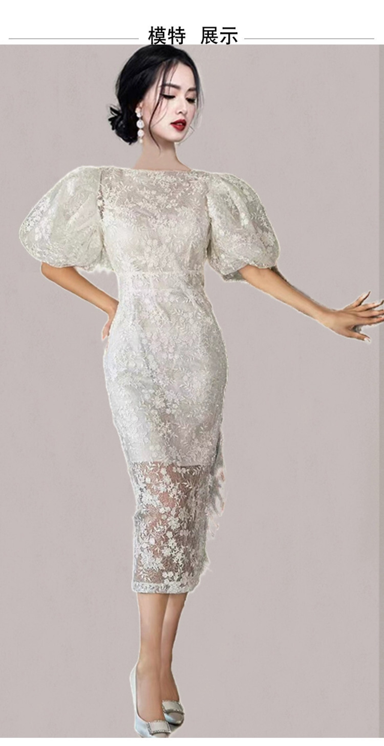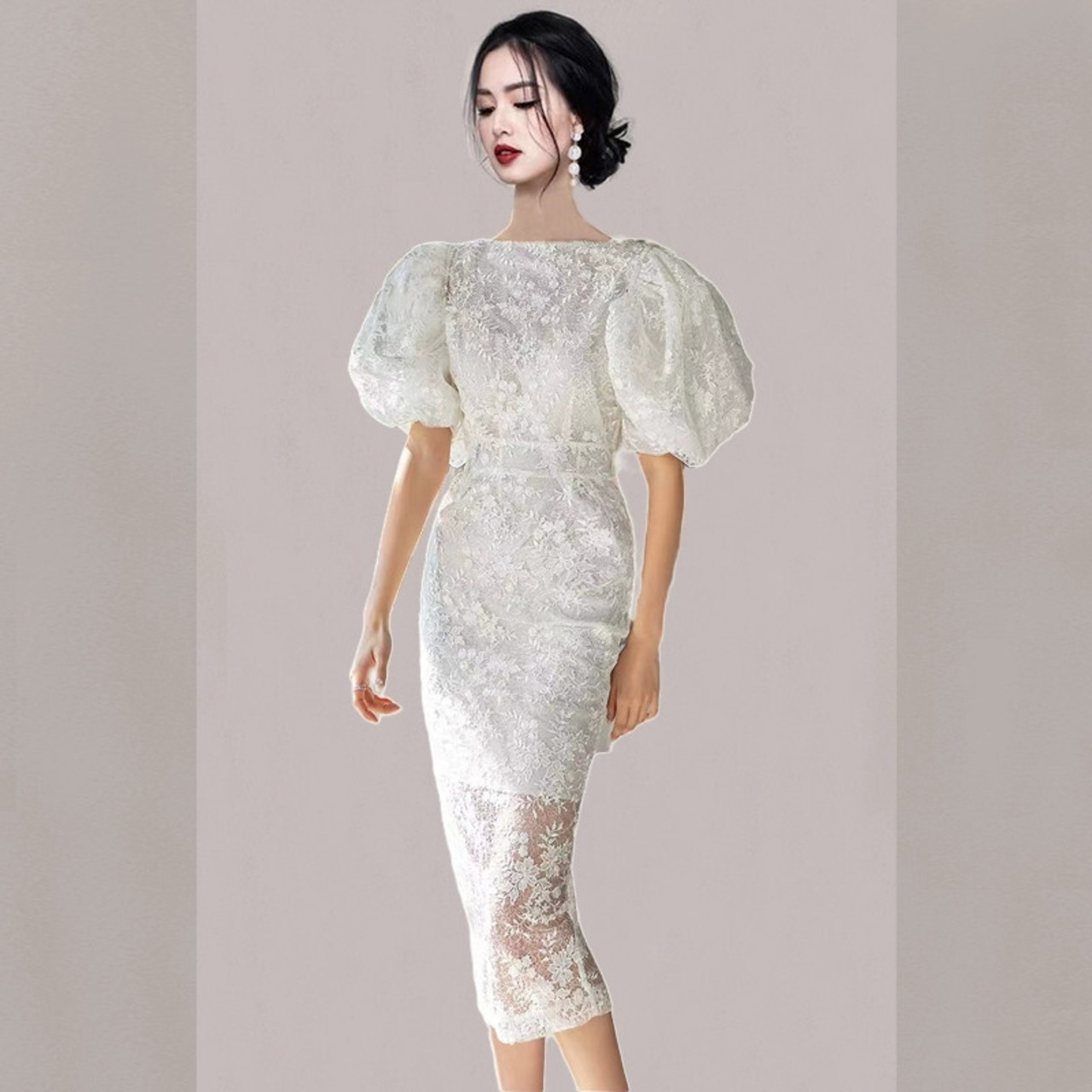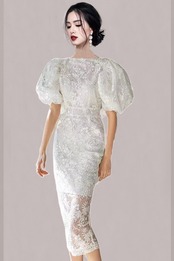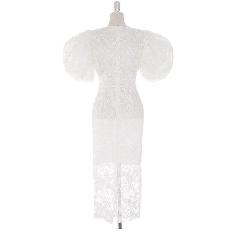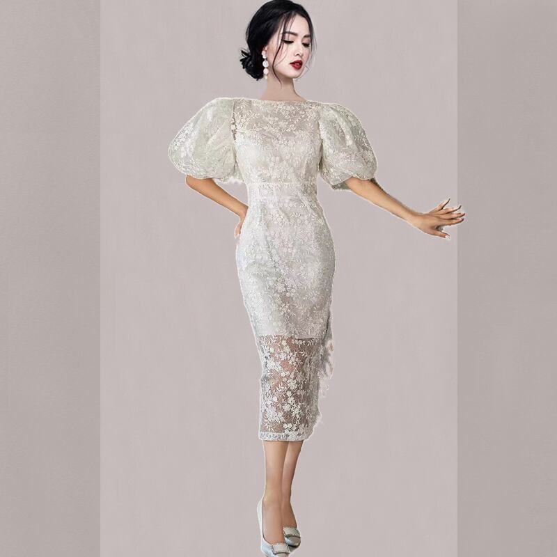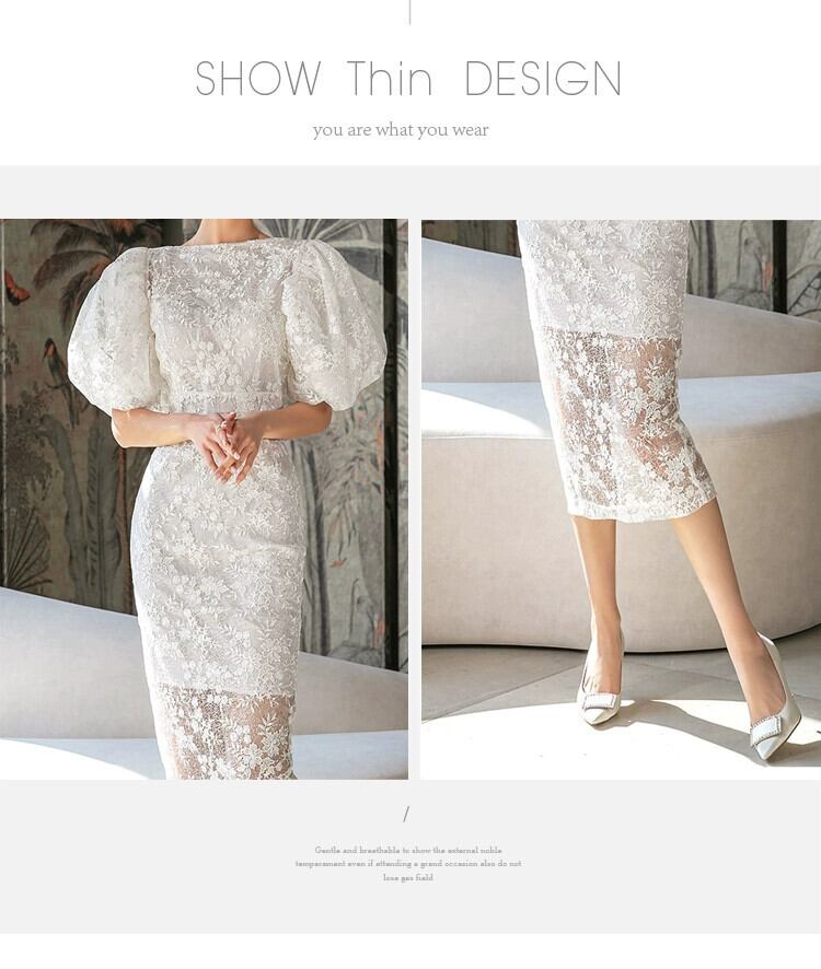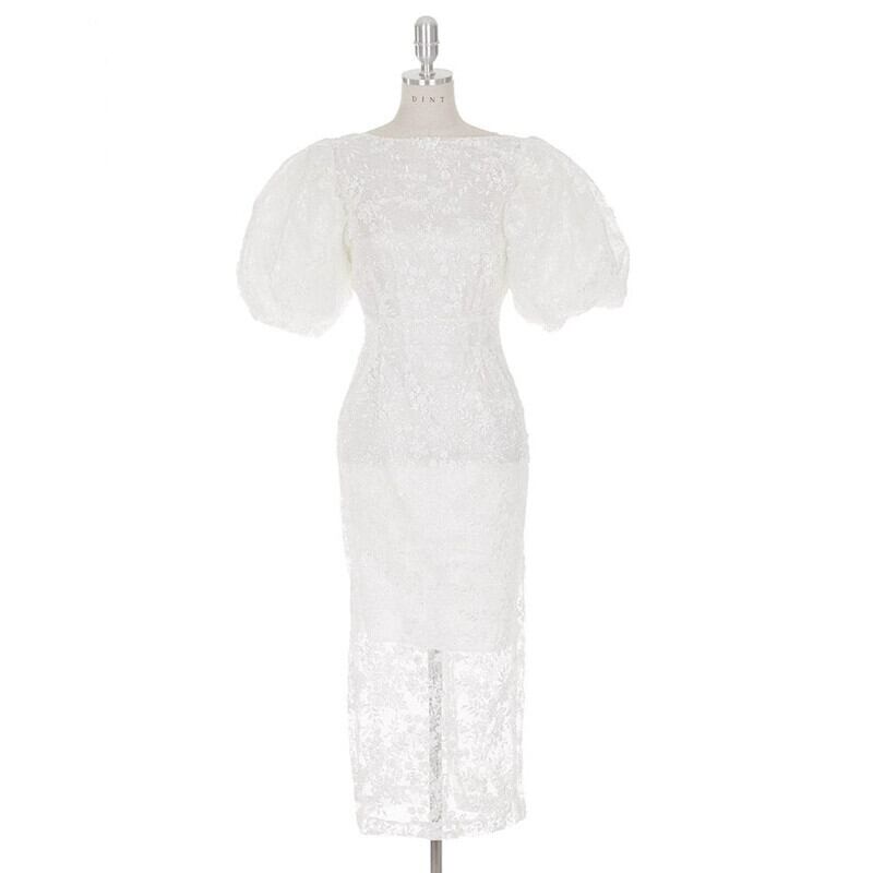 2023 夏の新バージョンの重工業刺繍レースバッグヒップドレスウェディングパーティーラウンドネックパフスリーブドレススカート サマー 夏物 Oネック missry57255971440 | guttiy